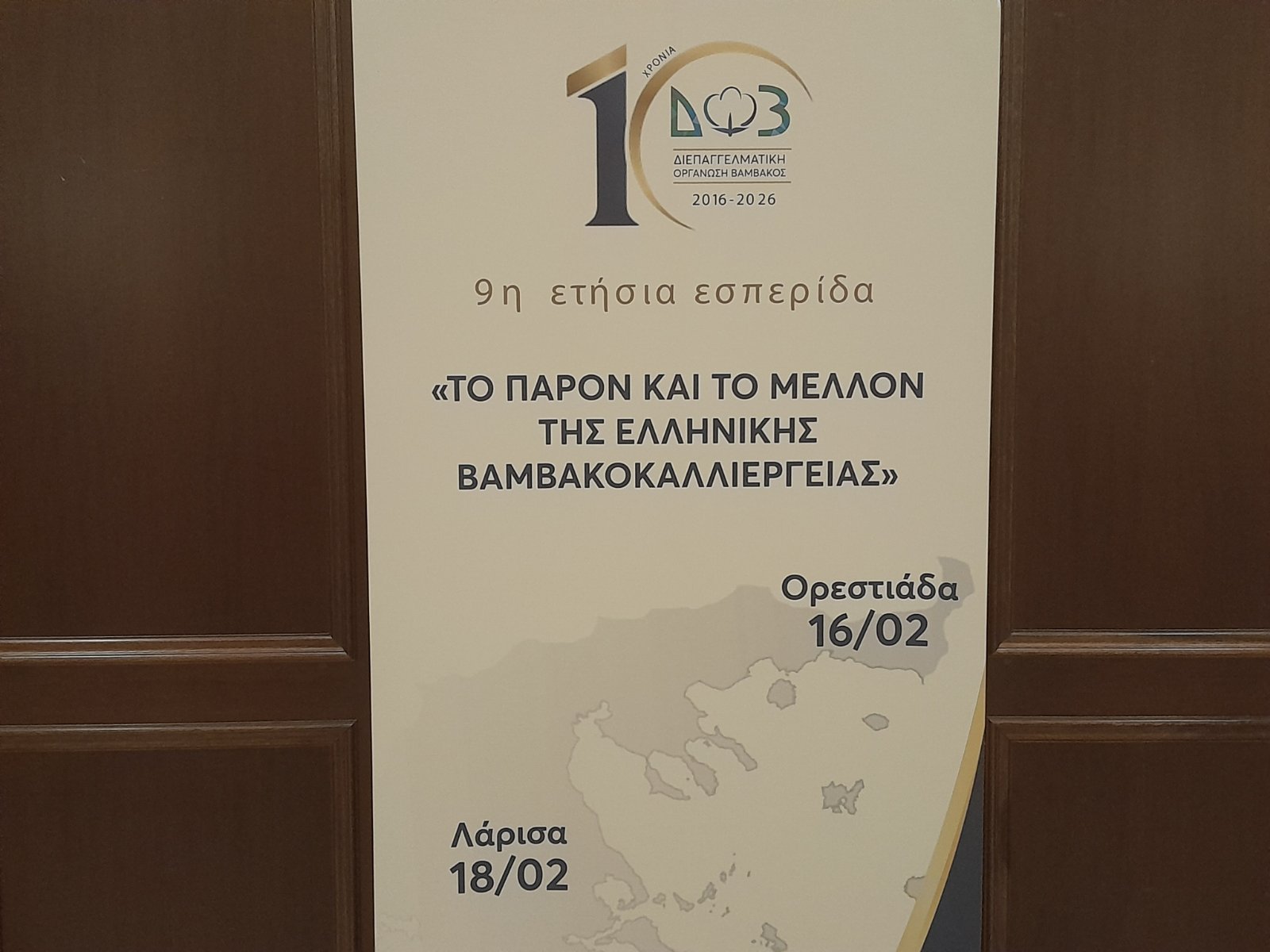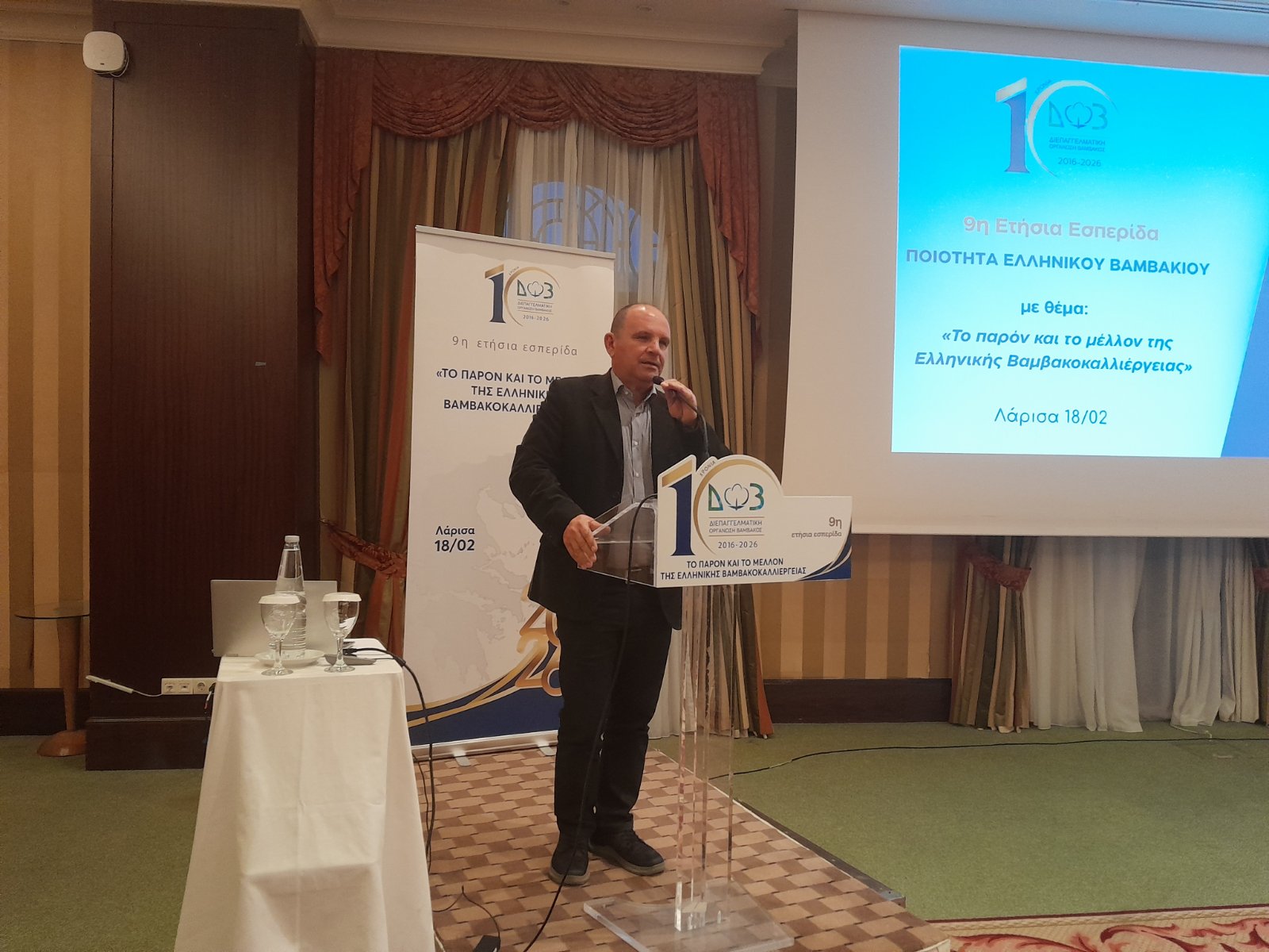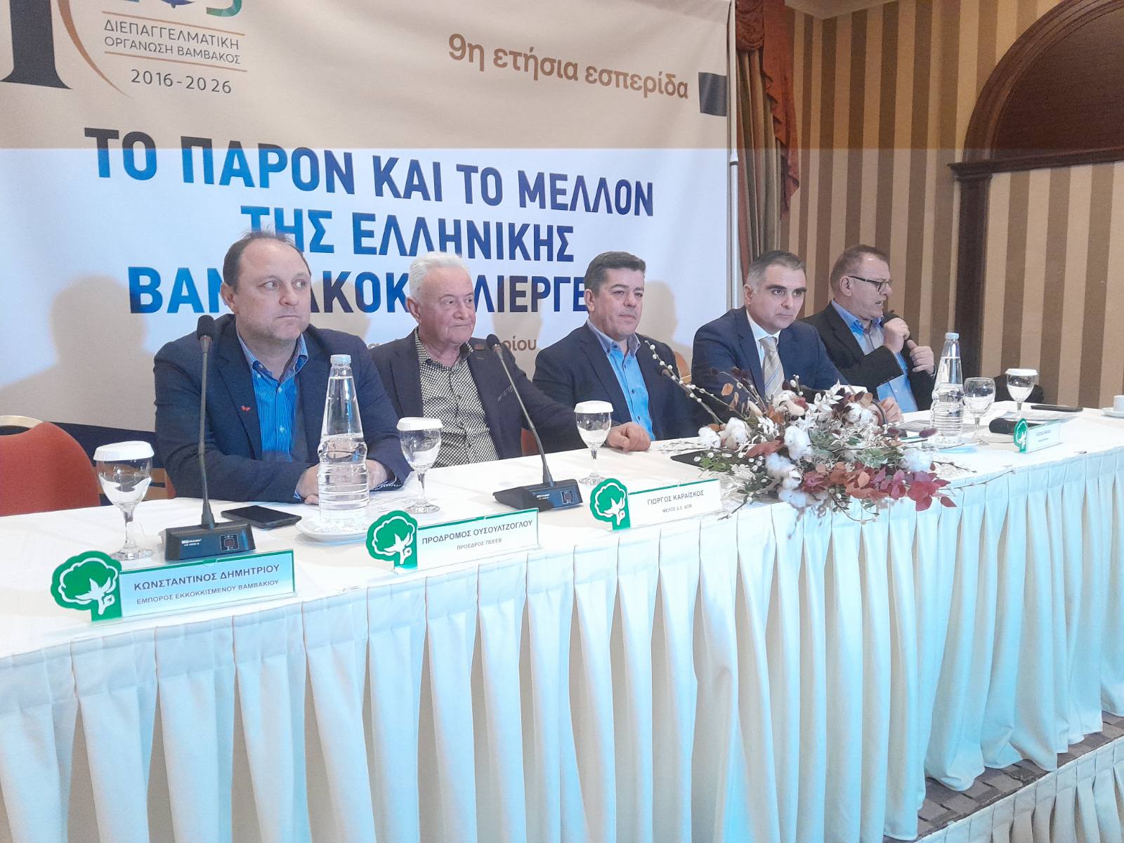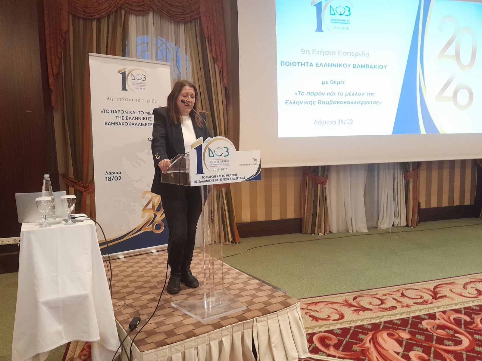 Σε μια γεμάτη αίθουσα σε ξενοδοχείο της Λάρισας τέθηκε επί τάπητος το θέμα του βαμβακιού, με τους Θεσσαλούς παραγωγούς να παρακολουθούν με ενδιαφέρον τη 2η εσπερίδα της Διεπαγγελματικής Οργάνωσης Βάμβακος για το 2026, με τίτλο: «Το παρόν και το μέλλον της ελληνικής βαμβακοκαλλιέργειας» στο πλαίσιο των ετήσιων εκδηλώσεων της Διεπαγγελματικής για την προώθηση του Ελληνικού Βαμβακιού.