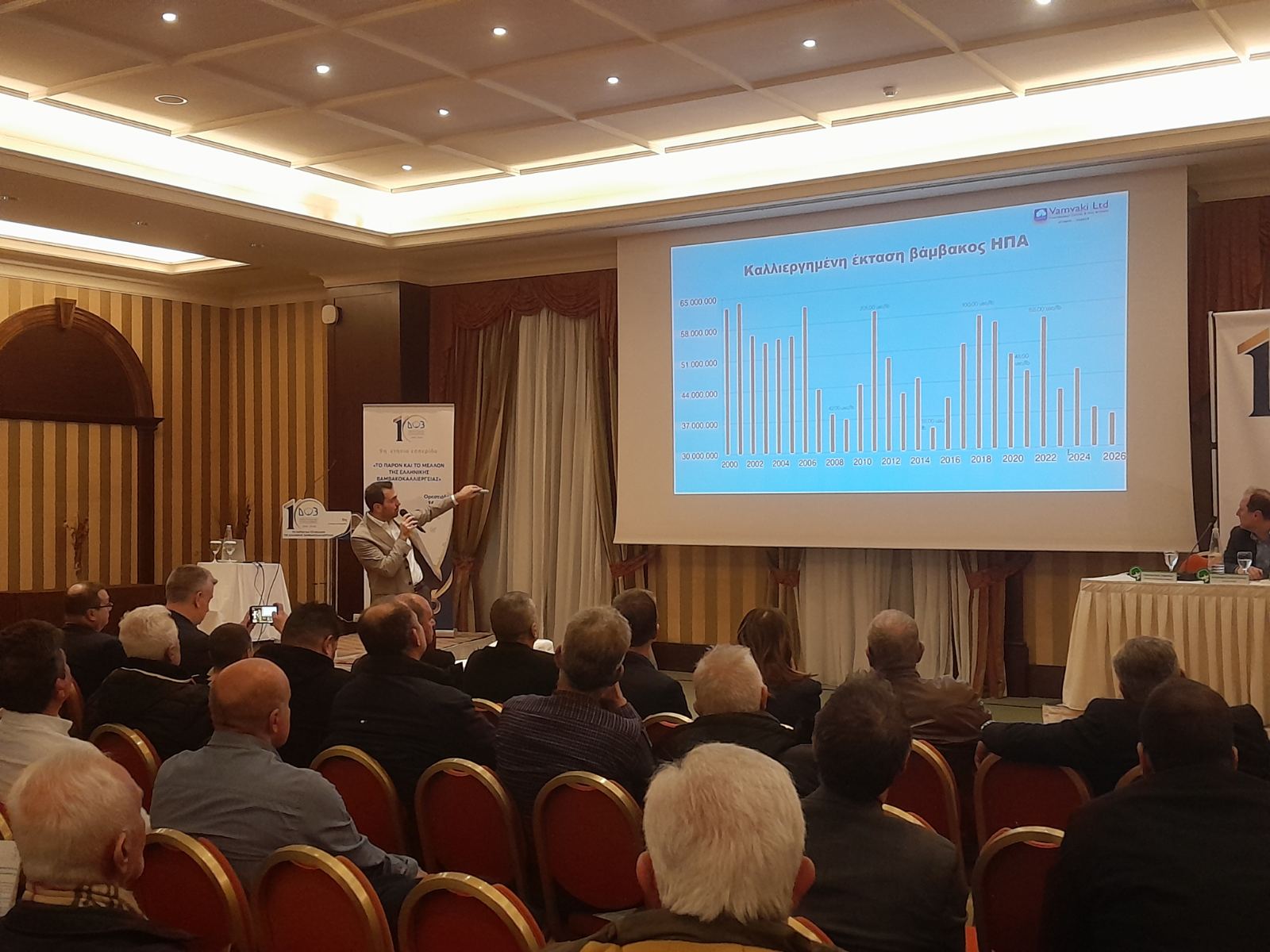 Τέλος, ο κ. Βασίλης Γιαννάκος, γ.γ. του ΔΣ του ΔΟΒ, τόνισε: «Κάθε χρόνο η Διεπαγγελματική Οργάνωση Βάμβακος κάνει εσπερίδες, έτσι λέγονται, ενημερωτικές δηλαδή εκδηλώσεις, ώστε οι παραγωγοί της κάθε βαμβακοπεριοχής να ενημερώνονται για την πορεία του βαμβακιού και να καταθέτουν τους προβληματισμούς τους, αλλά και εν τέλει να βγάζουμε ένα νόημα όσον αφορά πώς πρέπει να κινηθούμε για τη χρονιά η οποία έρχεται, την καλλιεργητική χρονιά. Λοιπόν, έτσι και φέτος εδώ στη Λάρισα επιλέχτηκε να γίνει δεύτερη εσπερίδα, ούτως ώστε σε συζήτηση με τους παραγωγούς να κάνουμε μια πιο καλή ενημέρωση, να ακούσουμε και τους δικούς τους προβληματισμούς.