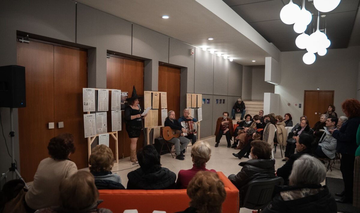 Η εκδήλωση έκλεισε με τραγούδια εποχής και σατιρικά ποιήματα από την κ. Καίτη Ξυδοπούλου με την συνοδεία της Γαλάτειας Στεφανή, του Κώστα Νέλλα στην κιθάρα και Φώτη Παπανικολάου στο ακορντέον.