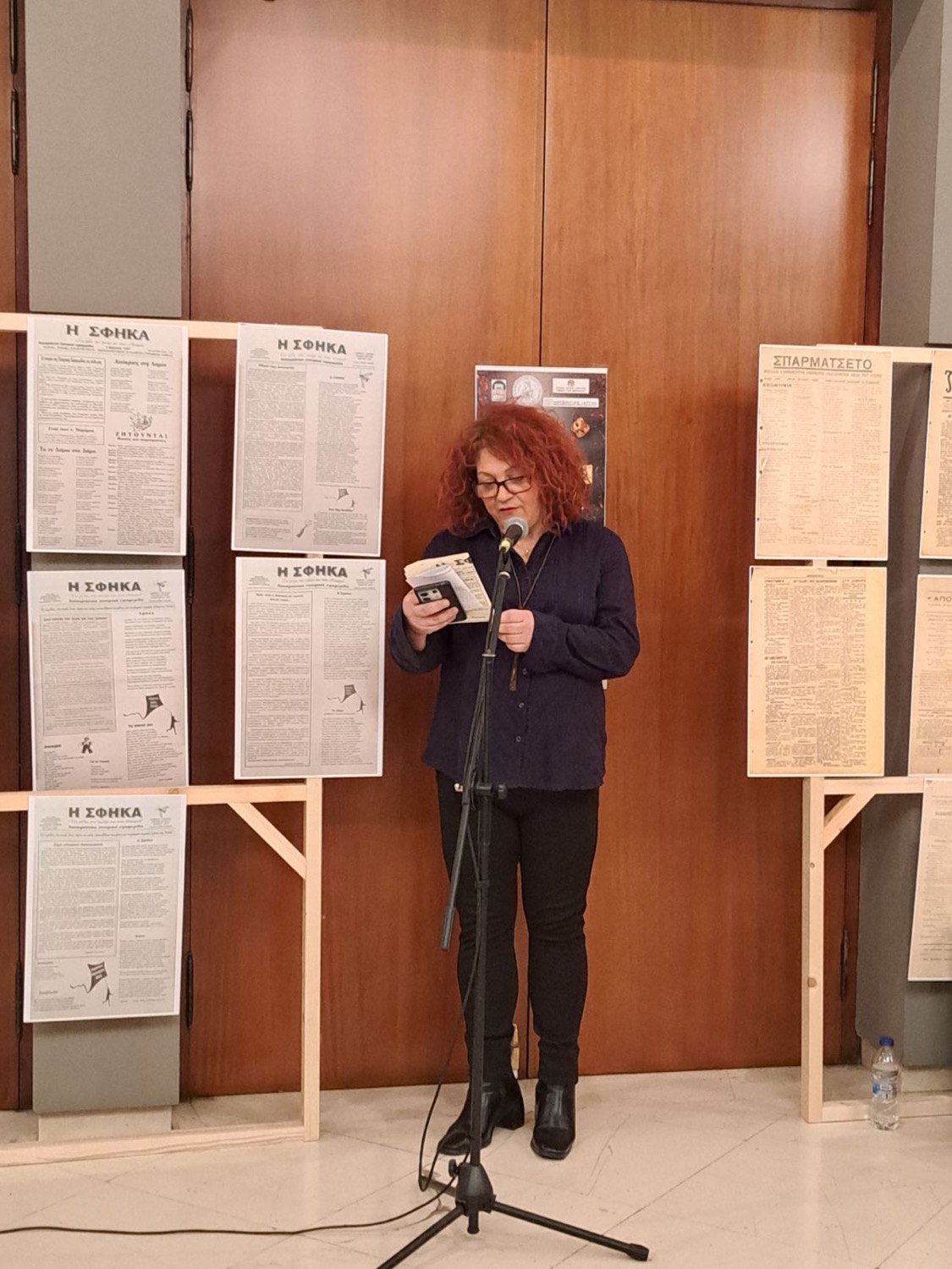 Η κ. Σοφία Βακιρτζηδέλη, Προϊσταμένη των Γενικών Αρχείων Κράτους – Τμήμα ΓΑΚ Φθιώτιδας, παρουσίασε τα σατιρικά έντυπα «Σπαρματσέτο» και «Αριστοφάνης» και επιμελήθηκε την έκθεση του αρχειακού υλικού.