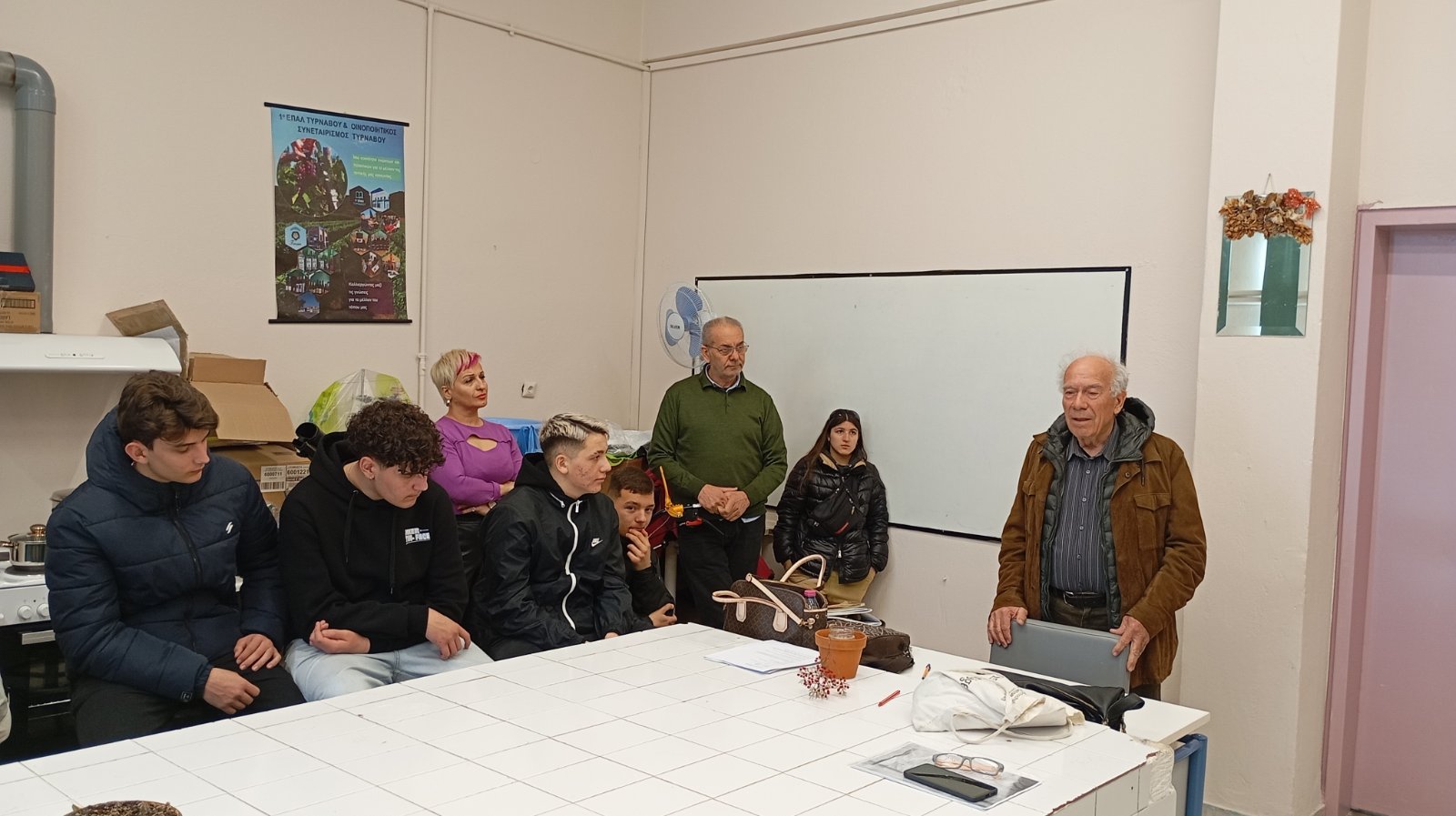 Ο οινοποιός και πρώην διευθυντής του Οινοποιείου του Συνεταιρισμού Τυρνάβου κ. Στέλιος Παπράς βρέθηκε και μίλησε στους μαθητές του τμήματος Φυτικής Παραγωγής και σε όσους συμμετέχουν στο πρόγραμμα «κατοικίες και κρασί τη δεκαετία του 50’ στον Τύρναβο».