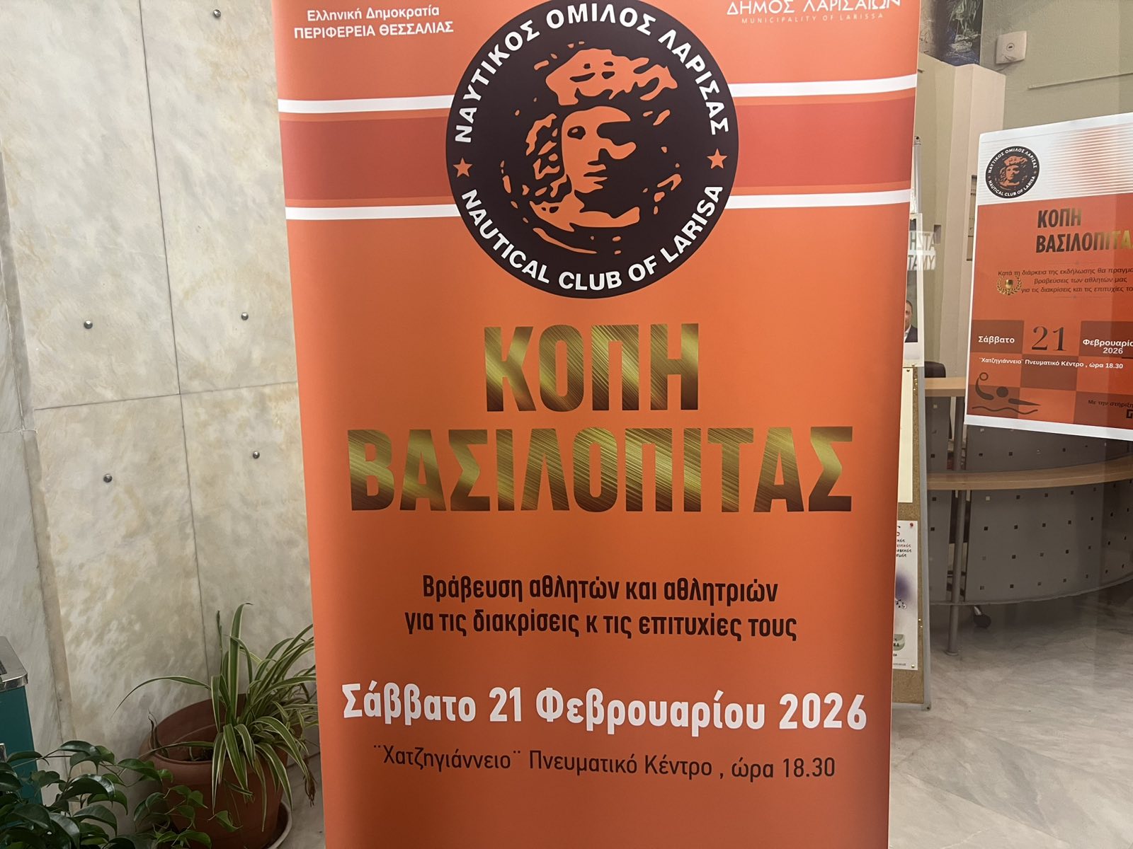Πλήθος κόσμου τίμησε με την παρουσία του την εκδήλωση για την κοπή της πρωτοχρονιάτικης πίτας που πραγματοποιήθηκε στο Χατζηγιάννειο Πνευματικό Κέντρο σήμερα, Σάββατο, στις 6:00 μ.μ. από τον Ναυτικό Όμιλο Λάρισας.