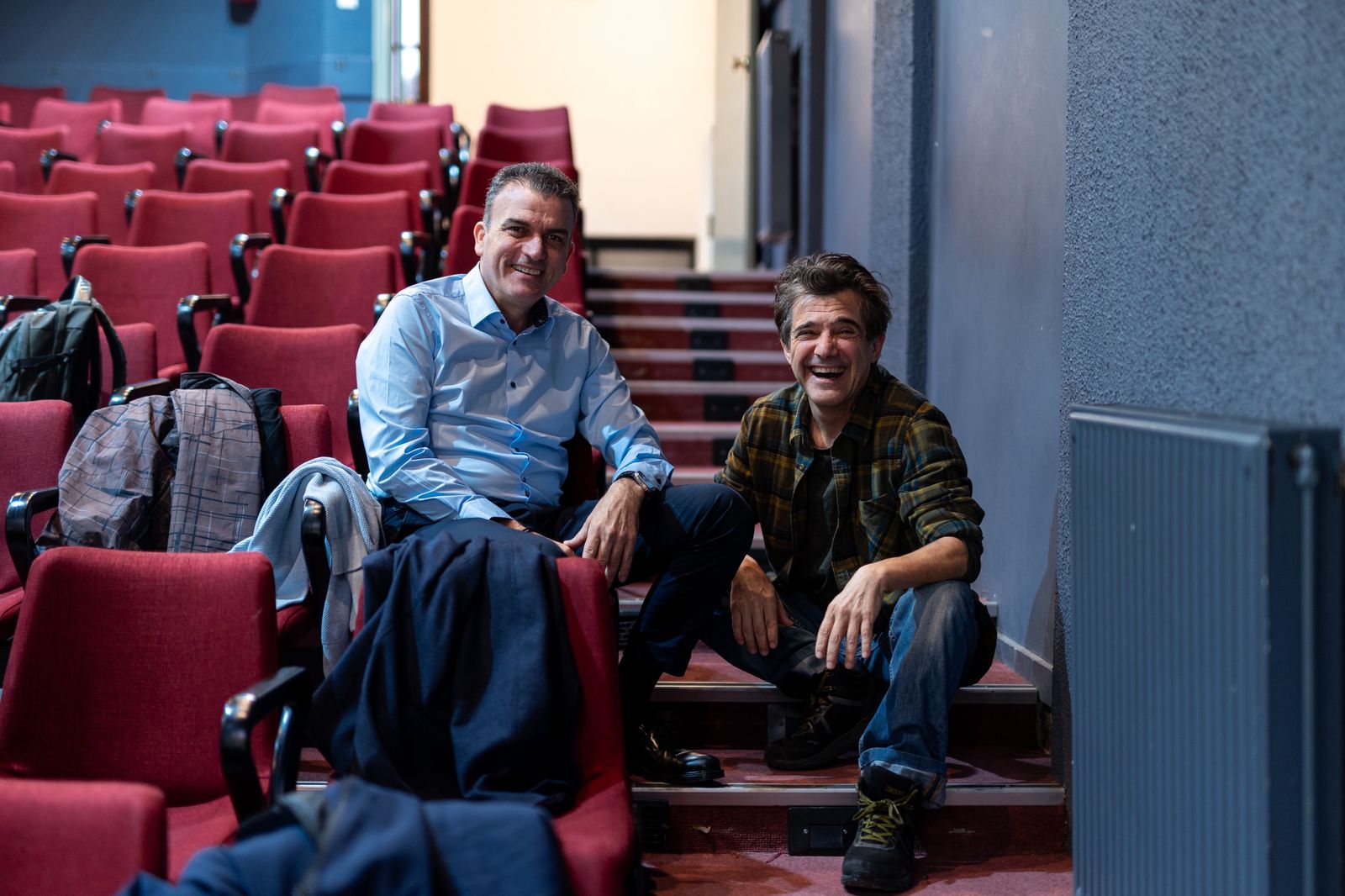 Θανάσης Μαμάκος και Γεράσιμος Γεννατάς επί σκηνής, στο Θεσσαλικό Θέατρο, σε μια ζωντανή, αποκαλυπτική συζήτηση για τα σύνορα της τέχνης και της ζωής.