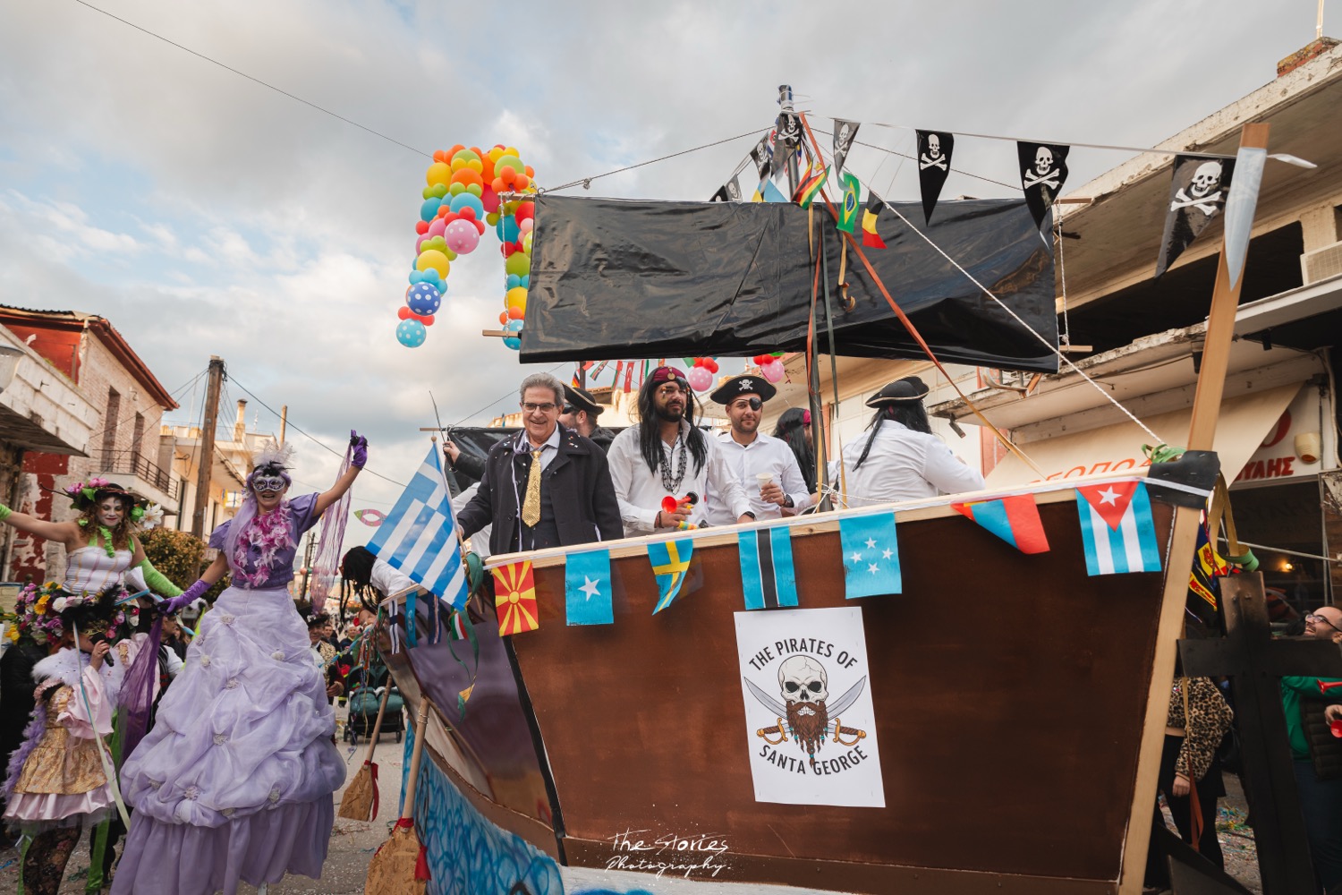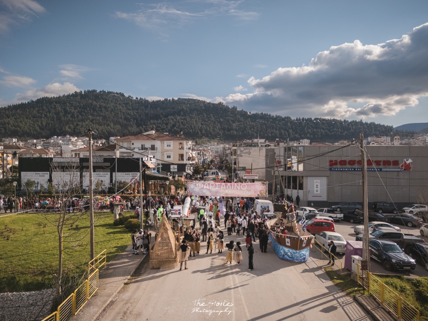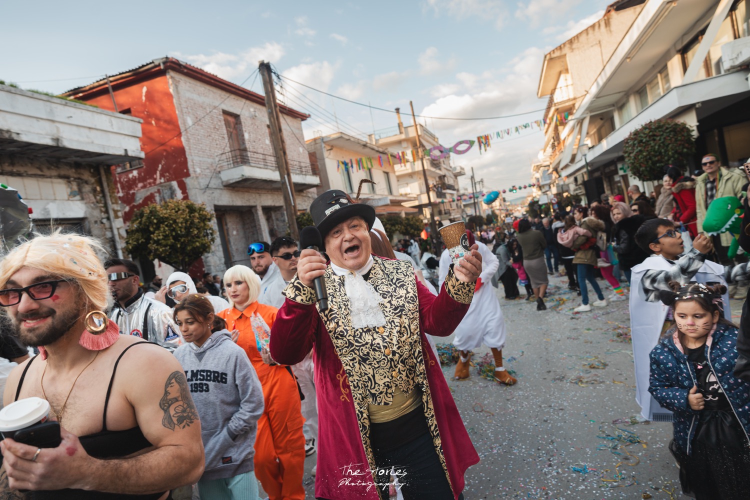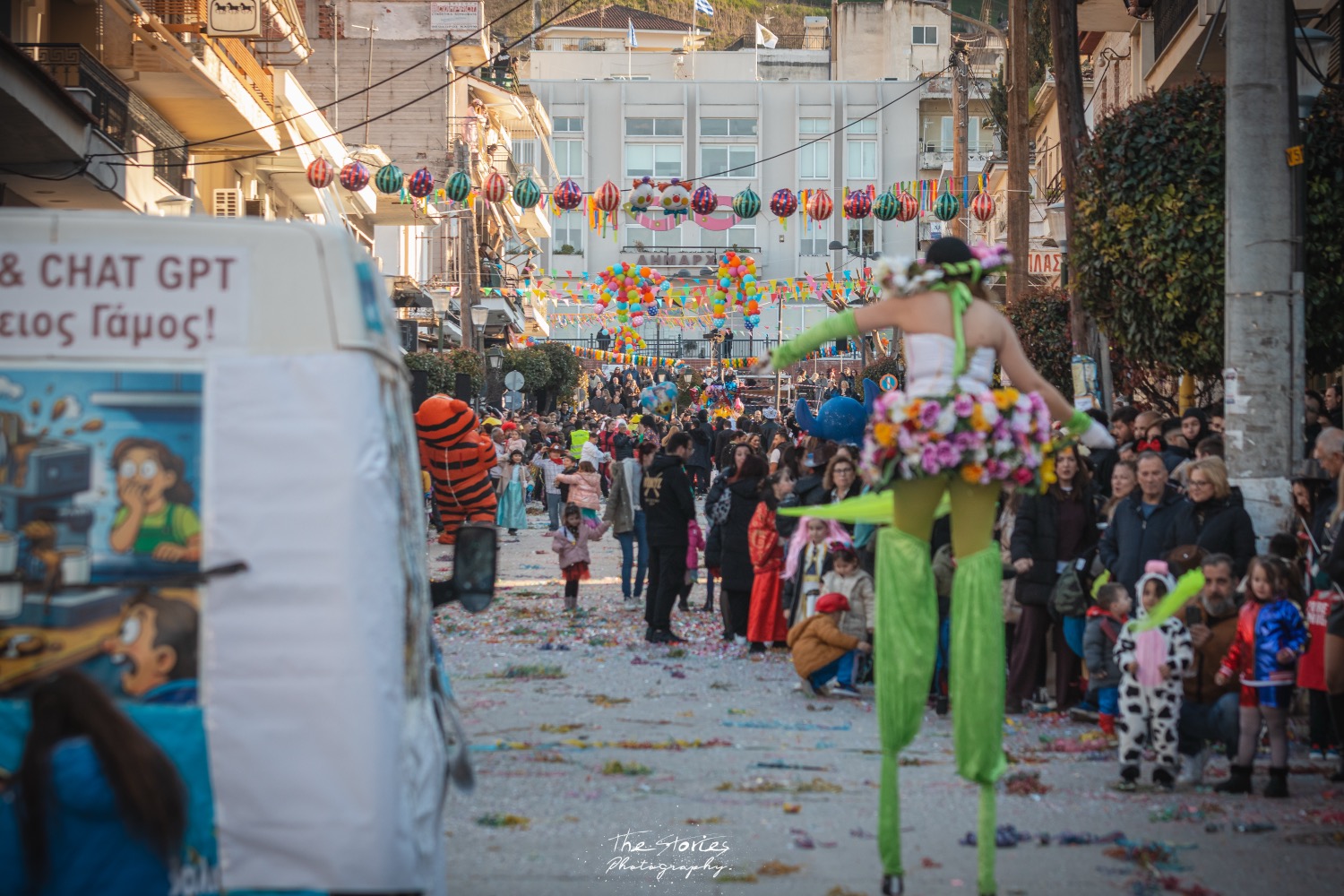 Το φετινό θέμα «Ο γύρος του κόσμου με το Φαρσαλινό Καρναβάλι» ζωντάνεψε μέσα από άρματα και στολές εμπνευσμένες από διαφορετικές χώρες και πολιτισμούς, μετατρέποντας το κέντρο της πόλης σε μια πολύχρωμη σκηνή γιορτής και δημιουργίας.