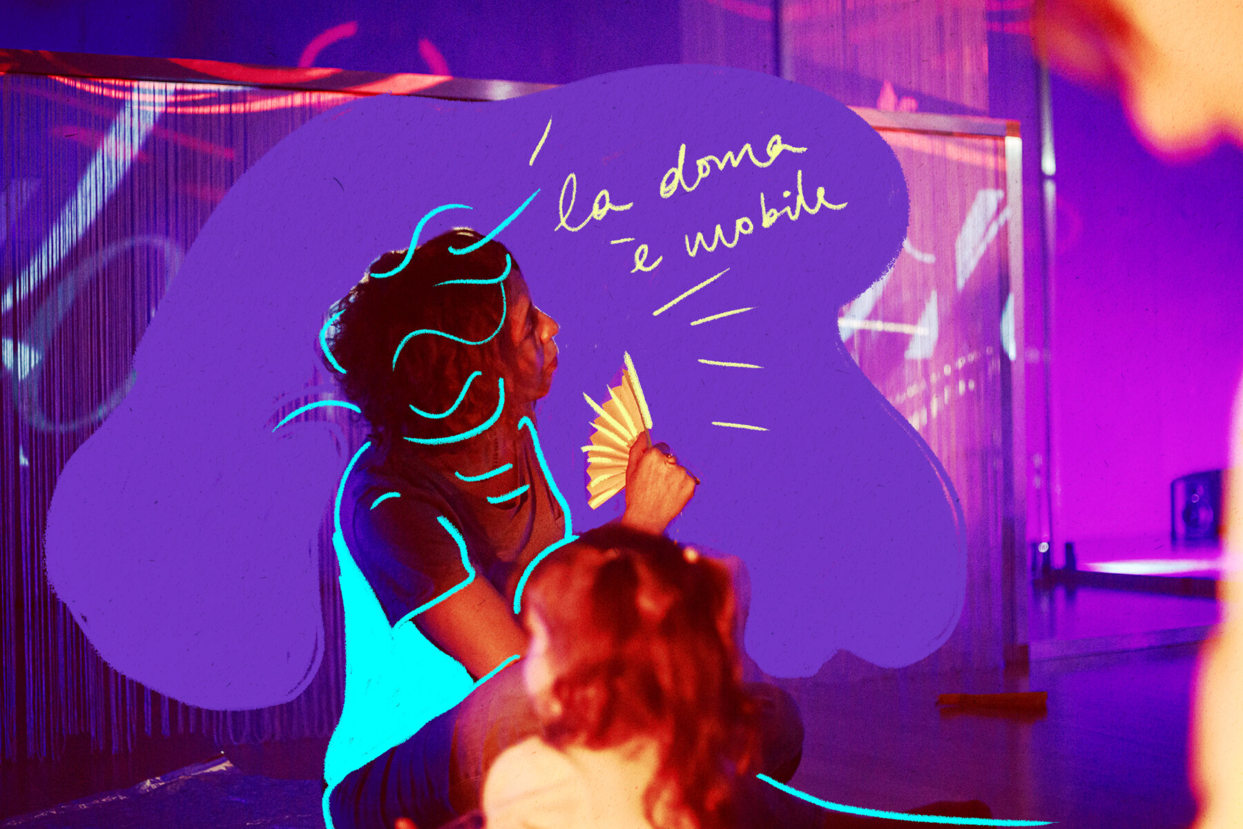 Εμπνευσμένη από το έργο του Τζουζέππε Βέρντι και με αφετηρία την άρια «La donna è mobile», η δράση δημιουργεί έναν κόσμο ήχου, εικόνας και κίνησης, όπου τα παιδιά και οι συνοδοί τους συμμετέχουν ενεργά, ανακαλύπτοντας την όπερα μέσα από το παιχνίδι και την αισθητηριακή εξερεύνηση. Ζωντανή μουσική, χρώματα και ηχητικά τοπία συνθέτουν μια πρώτη, τρυφερή επαφή με το λυρικό θέατρο.