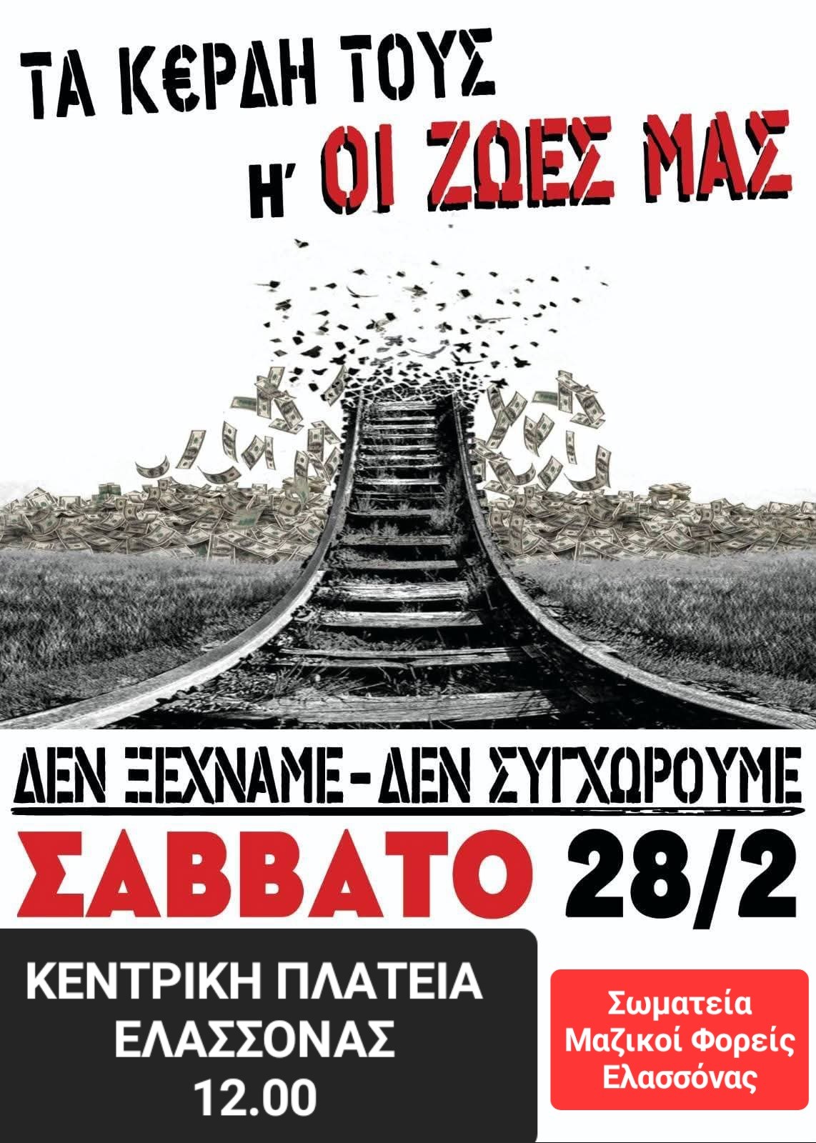 Ανακοίνωση – κάλεσμα του Μορφωτικού Συλλόγου Τσαριτσάνης αναφορικά με το συλλαλητήριο του Σαββάτου (28/02) για τη συμπλήρωση τριών χρόνων από το δυστύχημα των Τεμπών.