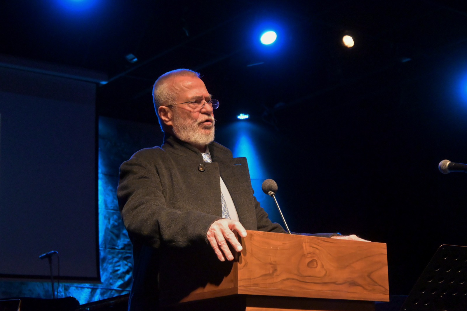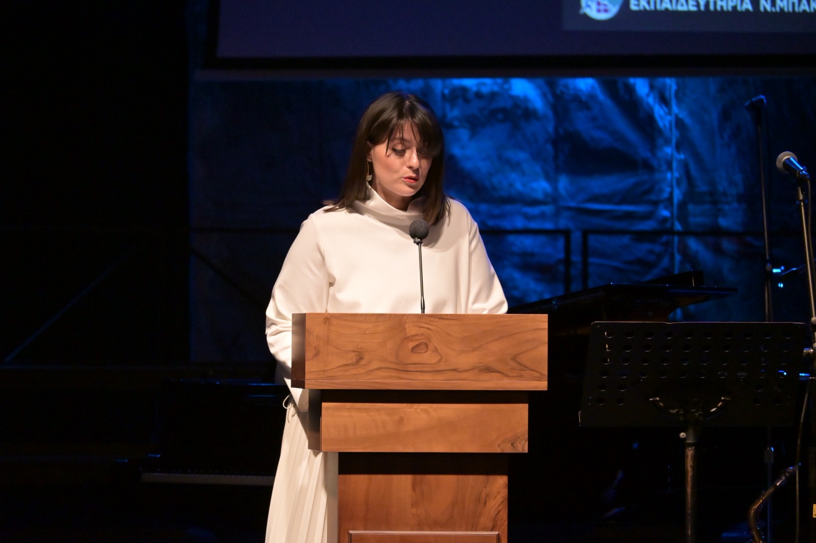 Απόψε είναι ιδιαίτερη η εκδήλωση γιατί είναι αφιερωμένη στον μεγάλο μας μουσικοσυνθέτη, τον Θάνο Μικρούτσικο, ο οποίος είχε μέχρι το τέλος της ζωής του μια ιδιαίτερη σχέση με το σχολείο μας, συνεχείς επισκέψεις και επικοινωνίες, εκδηλώσεις και δράσεις μαζί του. Είχα δηλαδή την ευκαιρία να είμαι, να συνυπάρχω μαζί του πάρα πολλές φορές και το αποτύπωμα της σχέσης αυτής θα με ακολουθεί σε ολόκληρη την πορεία της ζωής μου».