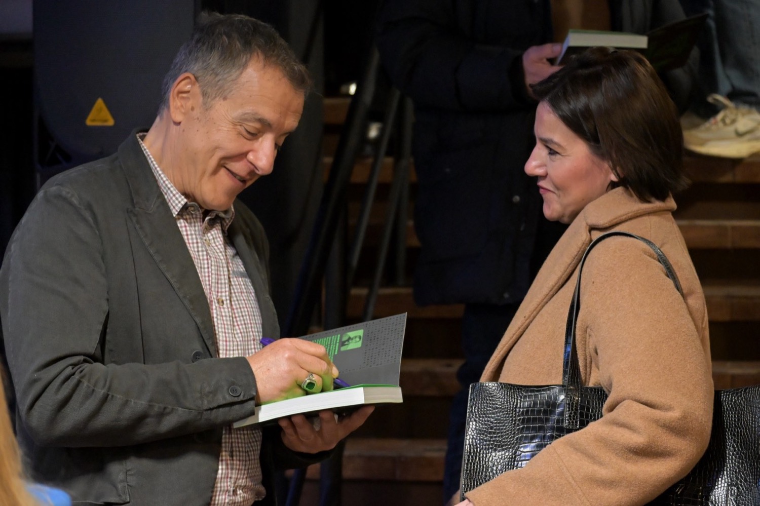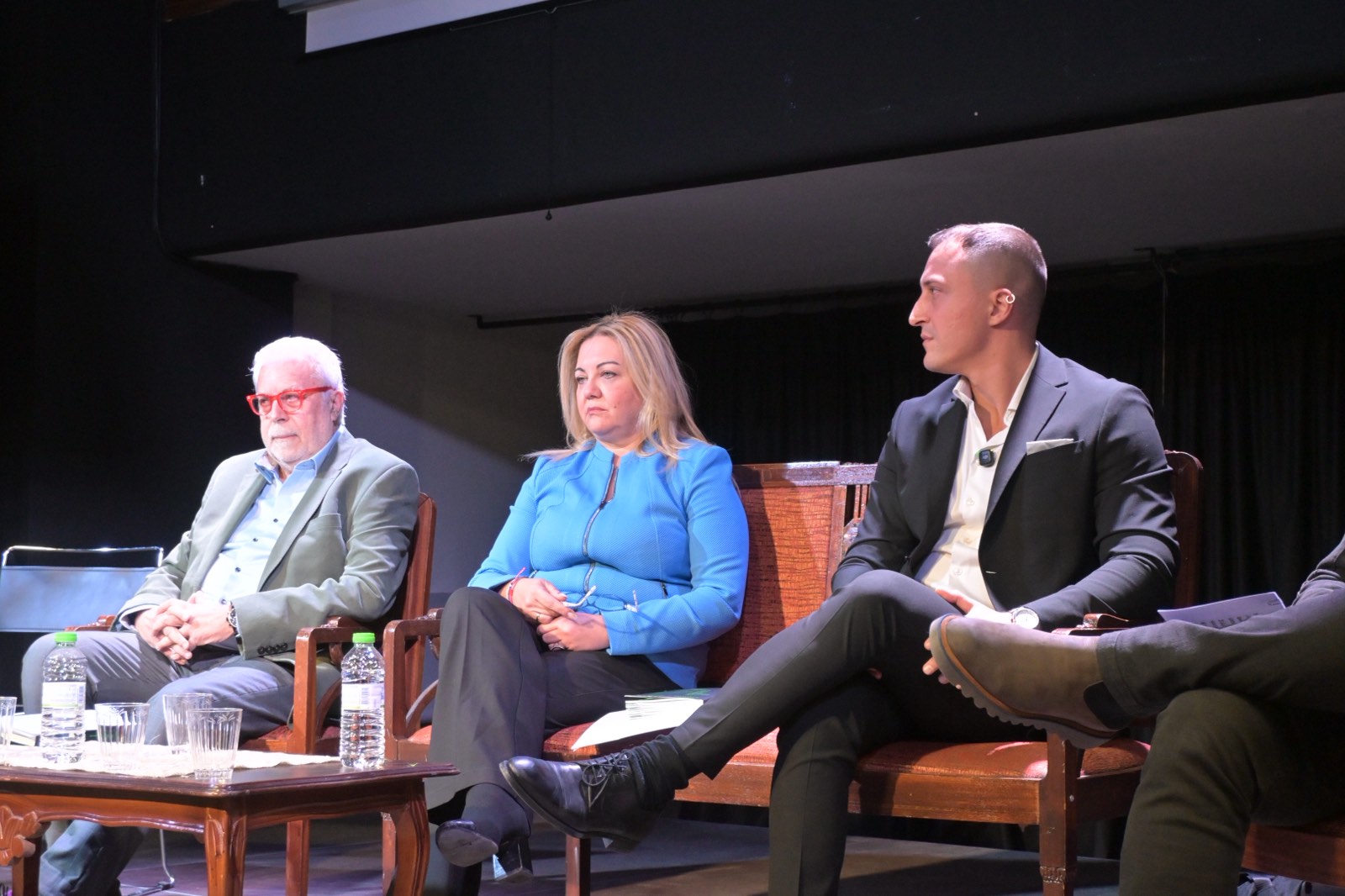Τη συζήτηση που έγινε στην Λογοτεχνική Γωνιά συντόνισε η υπεύθυνη ελληνικής πεζογραφίας των εκδόσεων Μεταίχμιο, Ελένη Μπούρα, σε μια εκδήλωση που επικεντρώθηκε στην ανάγκη ενός δημόσιου διαλόγου βασισμένου σε στοιχεία και όχι σε εντυπώσεις, με τους συγγραφείς να υπογράφουν στο τέλος αντίτυπα και να συνομιλούν με το κοινό.