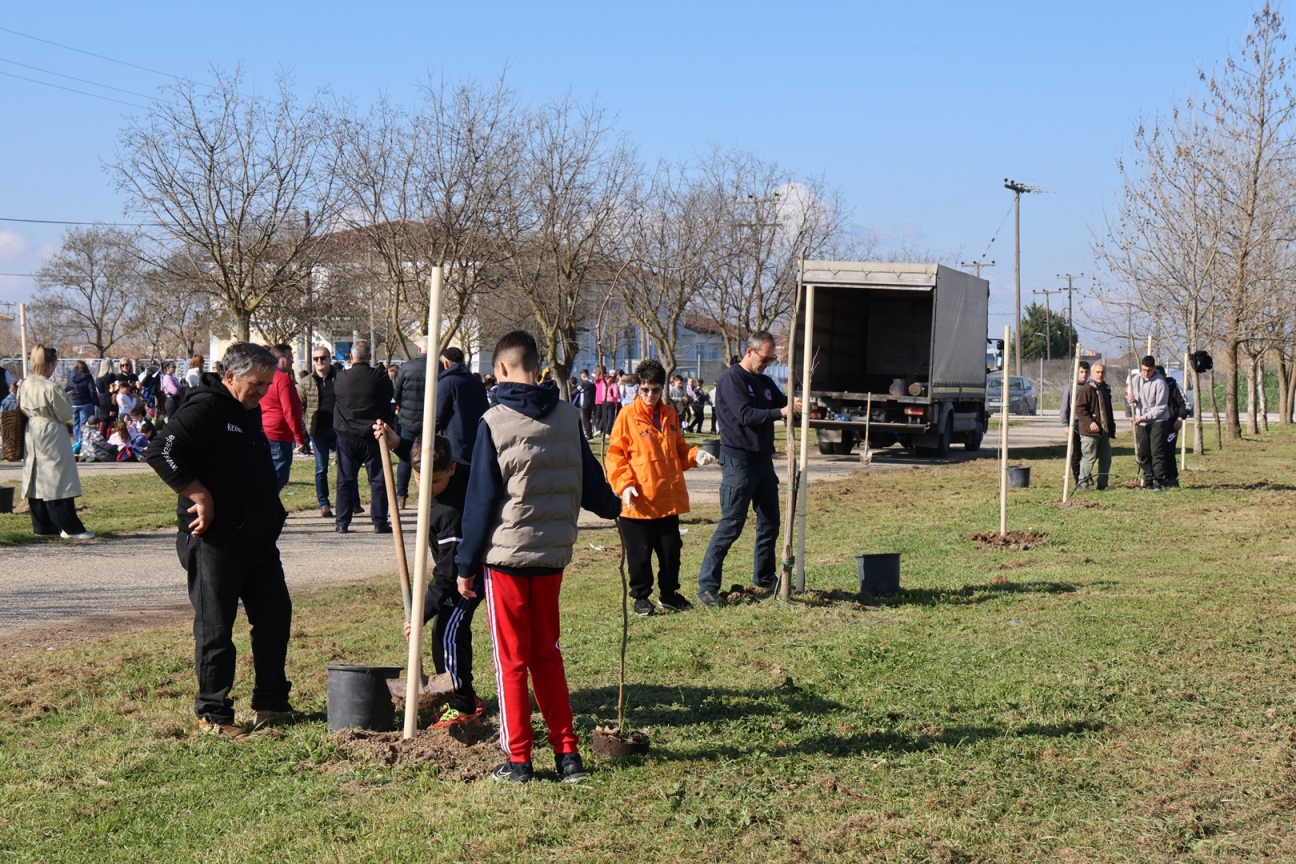 Εβδομήντα νέα δένδρα τοποθετήθηκαν σήμερα στον περιβάλλοντα χώρο του γηπέδου Φαλάνης
