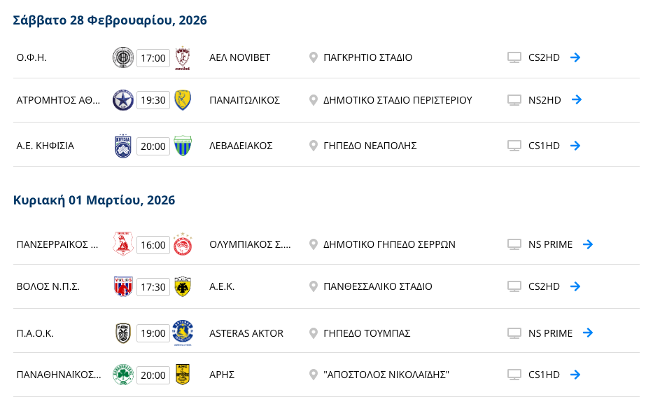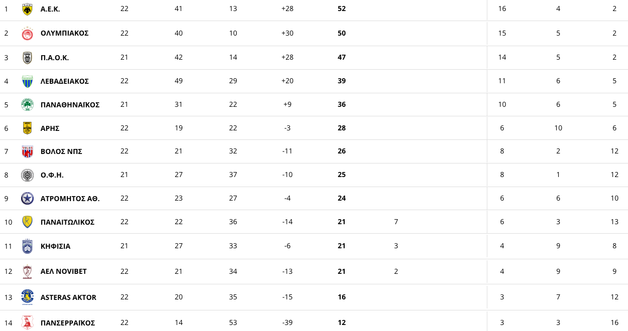Η βαθμολογία της Stoiximan Super League: