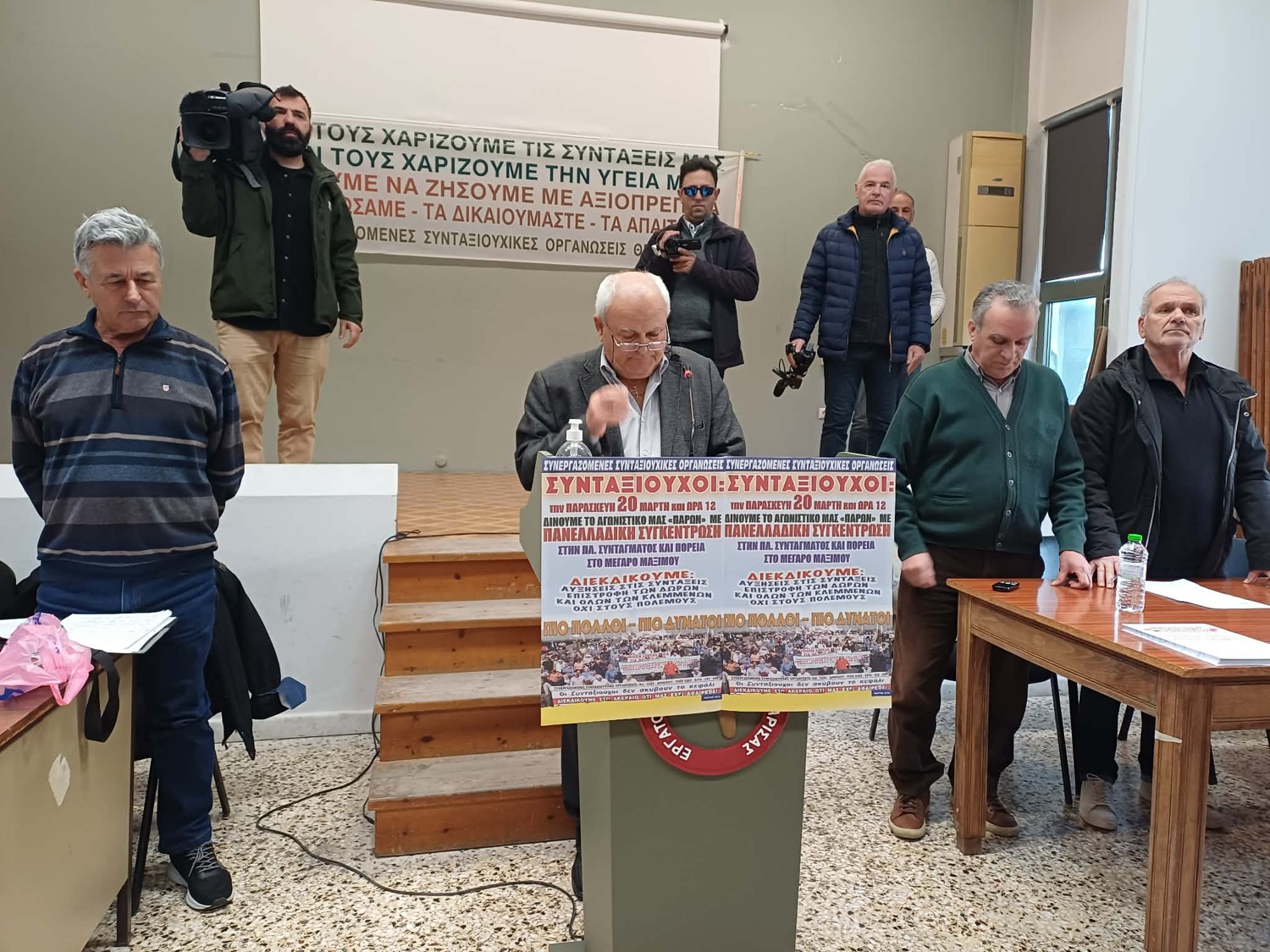 Σύσκεψη συνταξιουχικών σωματείων από όλη τη Θεσσαλία πραγματοποιήθηκε το πρωί της Τρίτης στο Εργατικό Κέντρο Λάρισας, στο πλαίσιο της προετοιμασίας του Πανελλαδικού Συλλαλητηρίου των συνταξιούχων που έχει προγραμματιστεί στην Αθήνα στις 20 Μαρτίου 2026 και περιλαμβάνει και πορεία προς το Μέγαρο Μαξίμου.