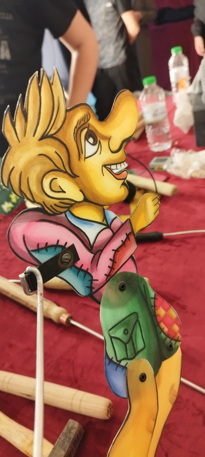 Ιδιαίτερη εντύπωση προκάλεσε το γεγονός ότι την παράσταση υλοποίησε εξ ολοκλήρου μαθητής της Β΄τάξης του σχολείου, ο Κωνσταντίνος Λίλος. Ο νεαρός καραγκιοζοπαίχτης ανέλαβε μόνος του, τον σχεδιασμό και την κατασκευή των φιγούρων, τη σχεδίαση των σκηνικών, καθώς και τη διασκευή του σεναρίου δίνοντας στην παράσταση σύγχρονο χαρακτήρα. Όπως εξήγησε στους συμμαθητές του, με τη βοήθεια ξυλουργού κατασκεύασε το τεσσάρων μέτρων σκηνικό, σχεδίασε τις φιγούρες σε ειδική πλαστική μεμβράνη και τις χρωμάτισε με ακρυλικά χρώματα, αποδεικνύοντας το μεράκι και την αφοσίωσή του σε κάθε λεπτομέρεια.