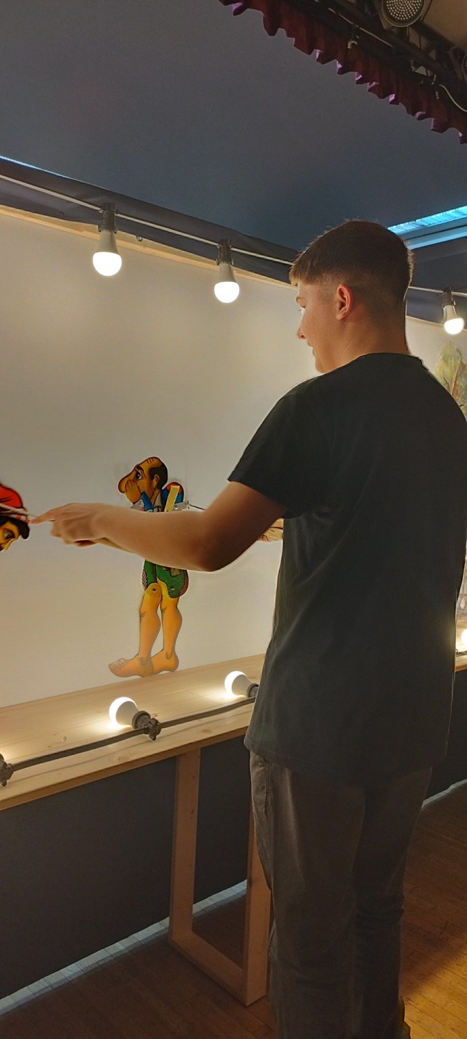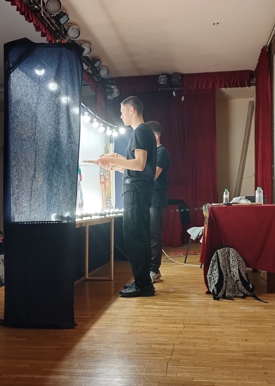 Σε ερώτηση από τους συμμαθητές του για το πώς ξεκίνησε η ενασχόλησή του με το θέατρο σκιών, απάντησε πως είναι αυτοδίδακτος και ασχολείται με αυτό από αγάπη. Η απλότητα της απάντησής του ανέδειξε ακόμη περισσότερο την αξία της προσπάθειάς του.