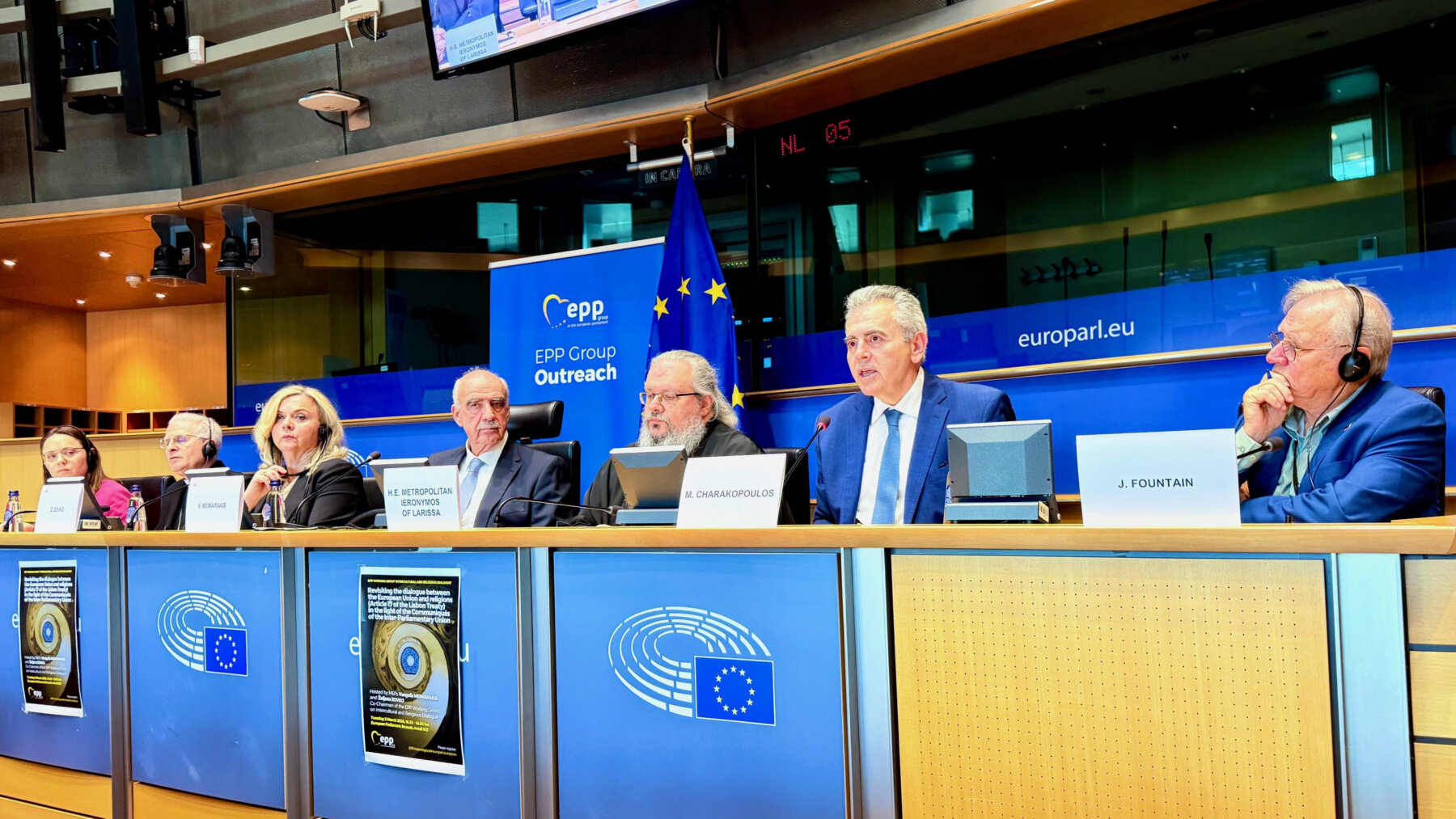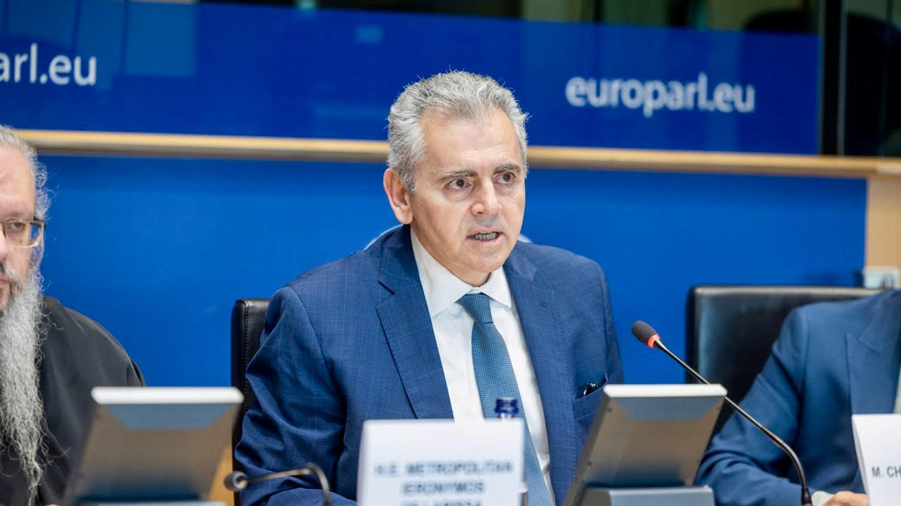 Ο Μάξιμος Χαρακόπουλος με τον Μητροπολίτη Λαρίσης Ιερώνυμο στο ευρωκοινοβούλιο