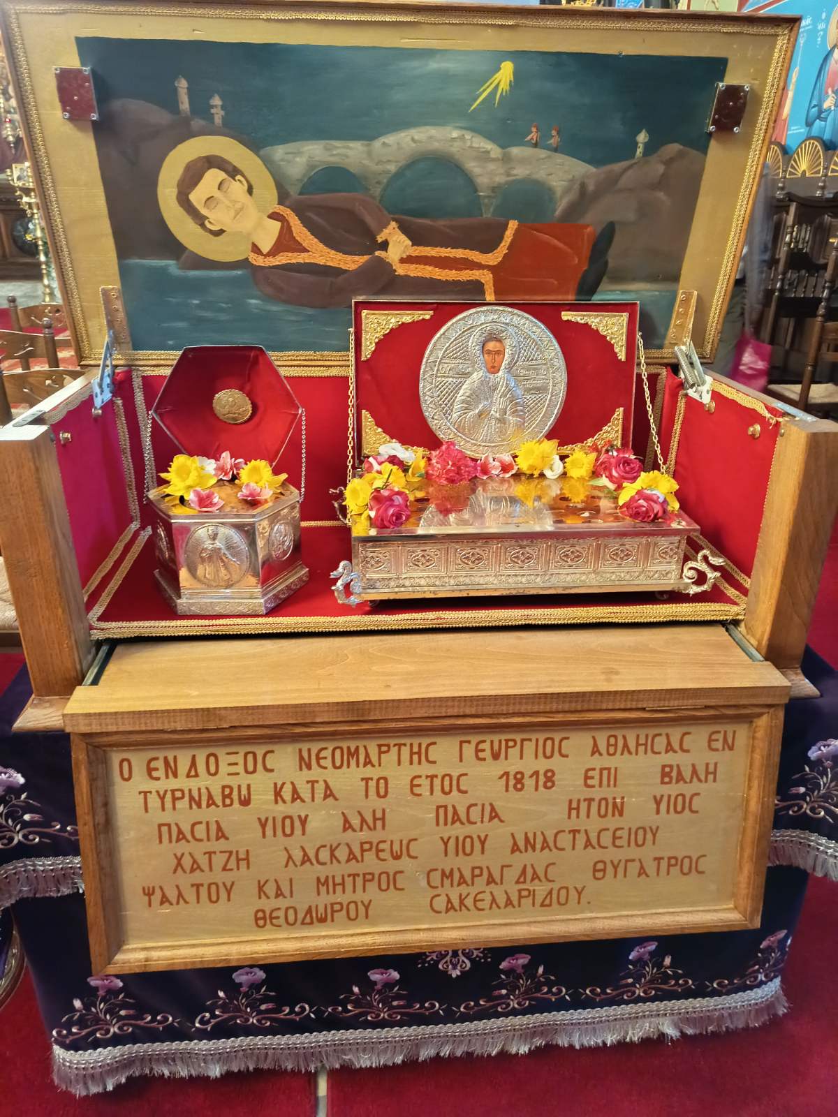 Την επόμενη ημέρα, ανήμερα της εορτής του Αγίου Νεομάρτυρα Γεωργίου, τελέστηκε Προηγιασμένη Θεία Λειτουργία μετ΄αρτοκλασίας, προεξάρχοντος του Αρχιμανδρίτη π. Κυρίλλου και συλλειτουργούντος του εφημερίου π. Διοδώρου, στον Ιερό Ναό της Κοιμήσεως της Θεοτόκου. Τον θείο λόγο κήρυξε ο π. Κύριλλος, ο οποίος αναφέρθηκε στο μαρτύριο του Αγίου και στη θυσία ενός νέου Διδασκάλου για την πίστη και την πατρίδα, ενώ καλλικέλαδοι ιεροψάλτες απέδωσαν μελωδικά τους ύμνους του Αγίου.