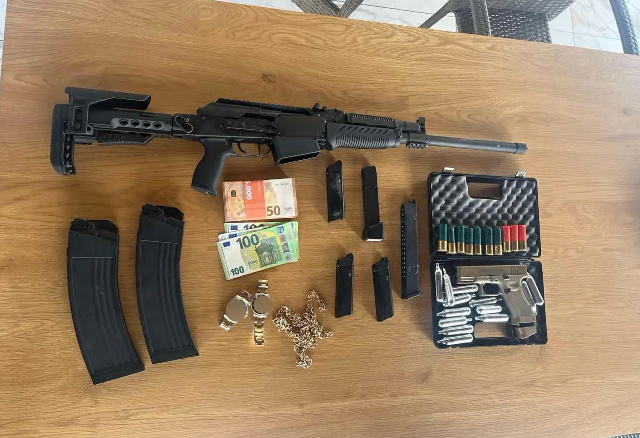 Κατά τις έρευνες που πραγματοποιήθηκαν στις οικίες των κατηγορουμένων εντοπίστηκαν και κατασχέθηκαν πλήθος αντικειμένων, μεταξύ των οποίων 52.930 ευρώ σε μετρητά, 2.267 λίρες αμφιβόλου γνησιότητας, 14 πολυτελή οχήματα και ακόμη ένα κλεμμένο, πέντε όπλα –περίστροφο, λυόκανο τυφέκιο, υποπολυβόλο, καραμπίνα και αεροβόλο πιστόλι– καθώς και πλήθος φυσιγγίων και γεμιστήρων. Επιπλέον βρέθηκαν επτά ρολόγια, χρυσές αλυσίδες, δαχτυλίδια, σταυροί, μενταγιόν και τσάντες, ναρκωτικά και αναβολικά χάπια, αμπούλες αναβολικών ουσιών, κάμερες, καταγραφικά, συσκευή γεωεντοπισμού, φορητός υπολογιστής και δώδεκα κινητά τηλέφωνα.