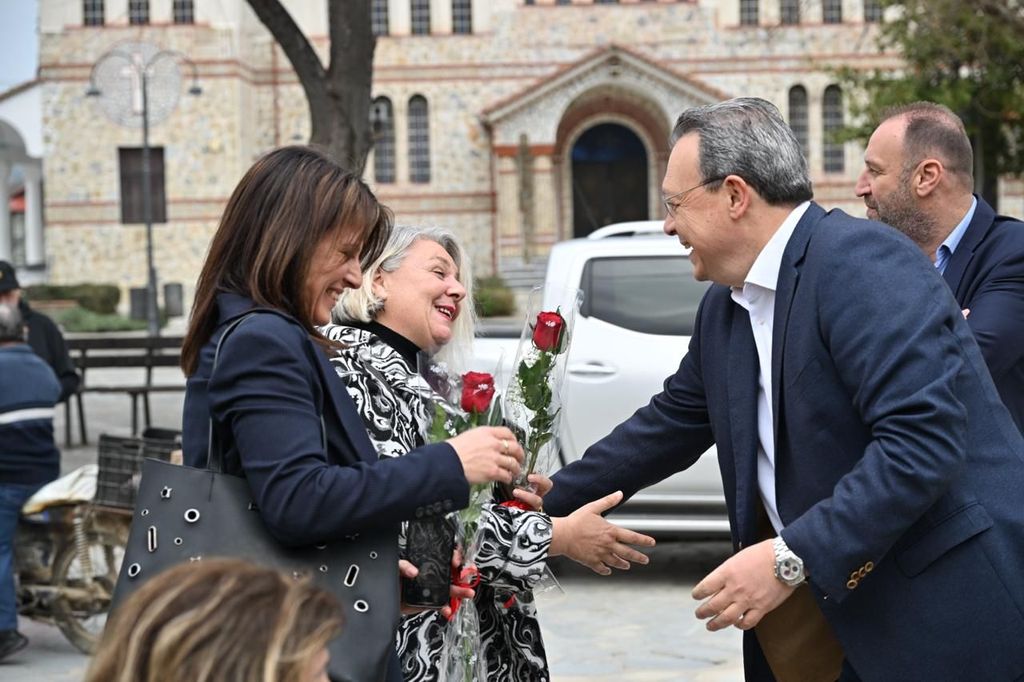 Ο πρόεδρος του ΣΥΡΙΖΑ-ΠΣ συναντήθηκε και συζήτησε με γυναίκες από το Ομόλιο Λάρισας, στις οποίες προσέφερε συμβολικά από ένα κόκκινο τριαντάφυλλο.