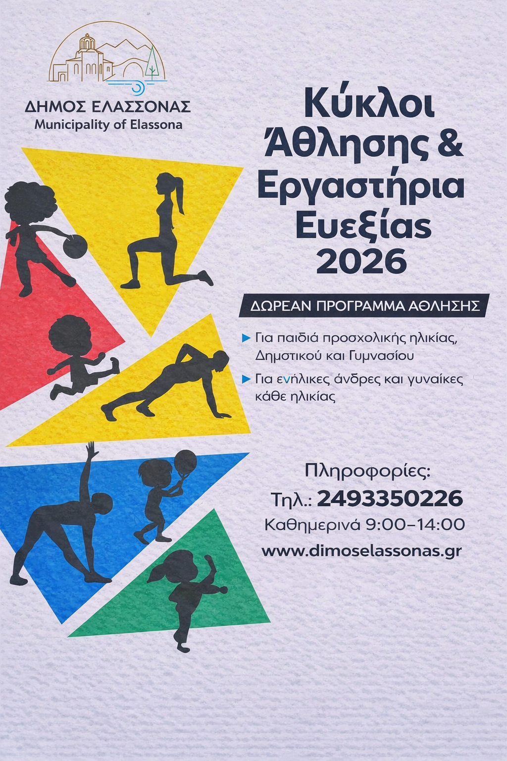 Δήμος Ελασσόνας: Παράταση υποβολής αιτήσεων για τους Κύκλους Άθλησης και τα Εργαστήρια Ευεξίας έως Παρασκευή 13 Μαρτίου