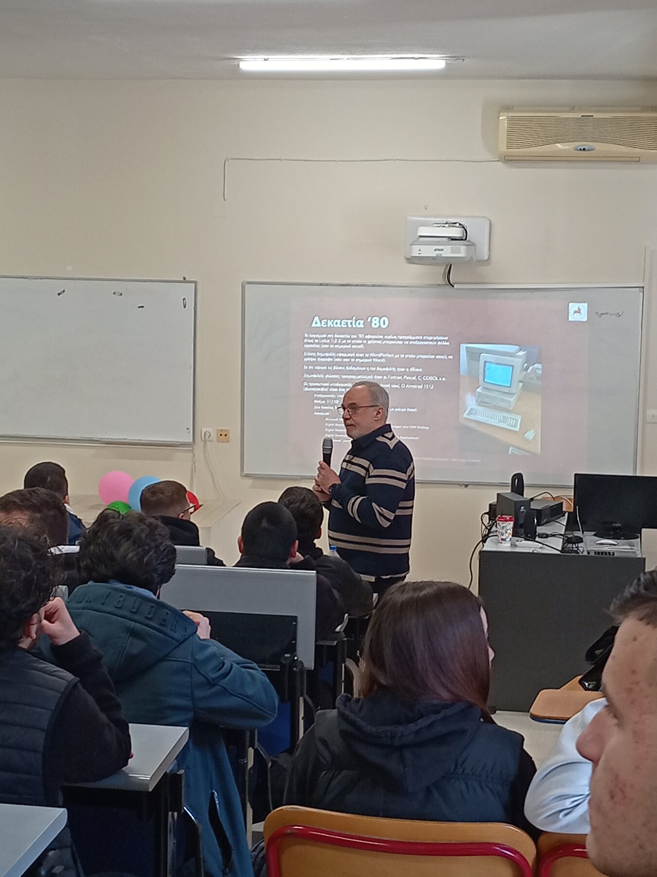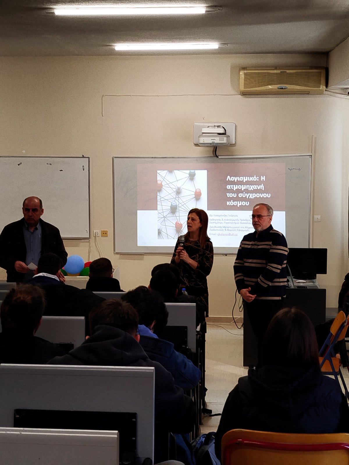 Τη Δευτέρα 9 Μαρτίου 2026 και ώρα 10:00 π.μ., πραγματοποιήθηκε στο 7ο ΕΠΑ.Λ. Λάρισας ενημερωτική ομιλία με τίτλο «Λογισμικό: Η ατμομηχανή του σύγχρονου κόσμου», η οποία απευθυνόταν σε μαθητές των τμημάτων της Β΄ και Γ΄ τάξης του Τομέα Πληροφορικής.