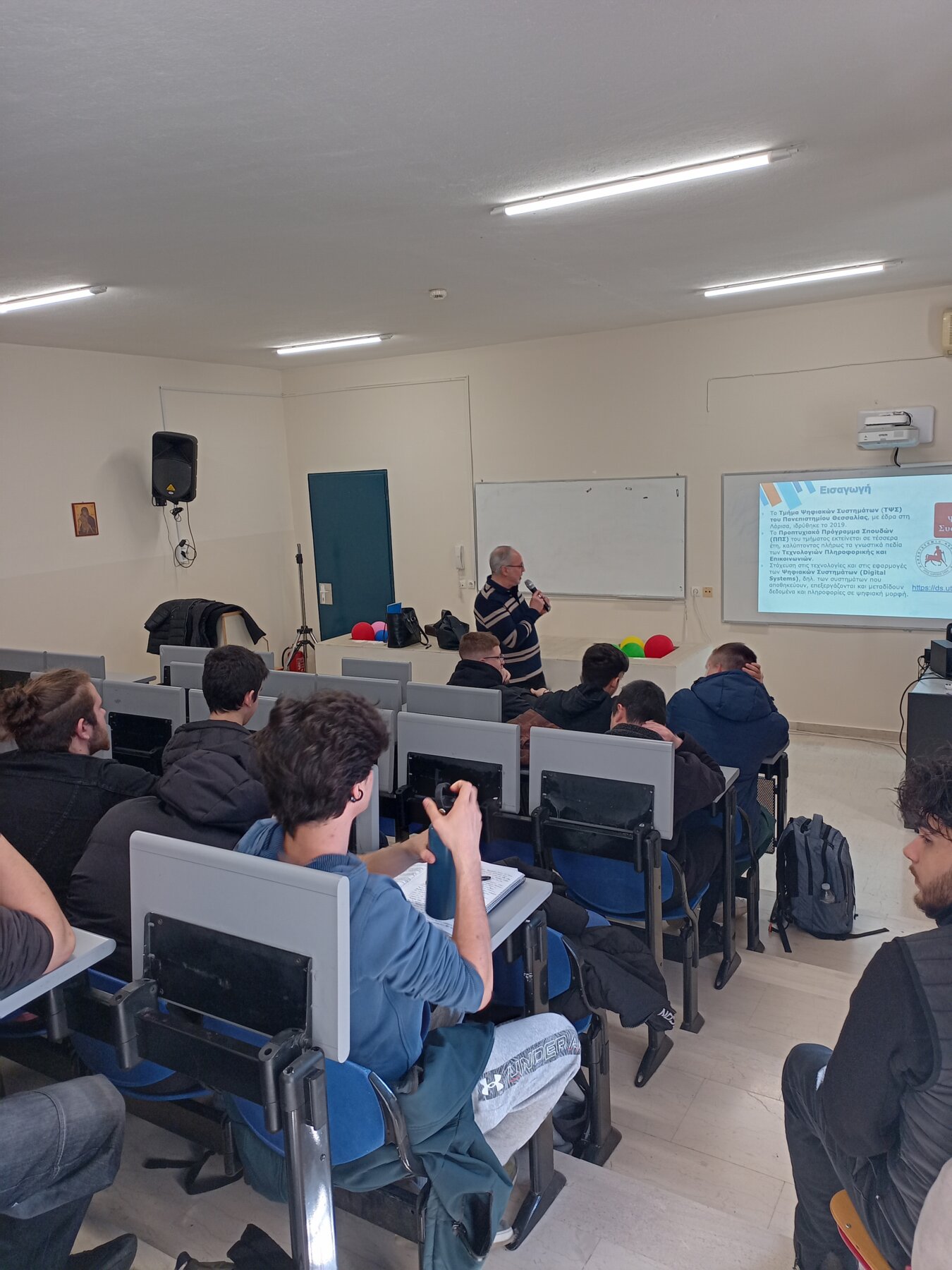 Οι μαθητές παρακολούθησαν με ιδιαίτερο ενδιαφέρον την ομιλία, συμμετείχαν ενεργά στη συζήτηση που ακολούθησε και είχαν την ευκαιρία να θέσουν ερωτήματα σχετικά με τις σπουδές και την επαγγελματική πορεία στον τομέα της Πληροφορικής.