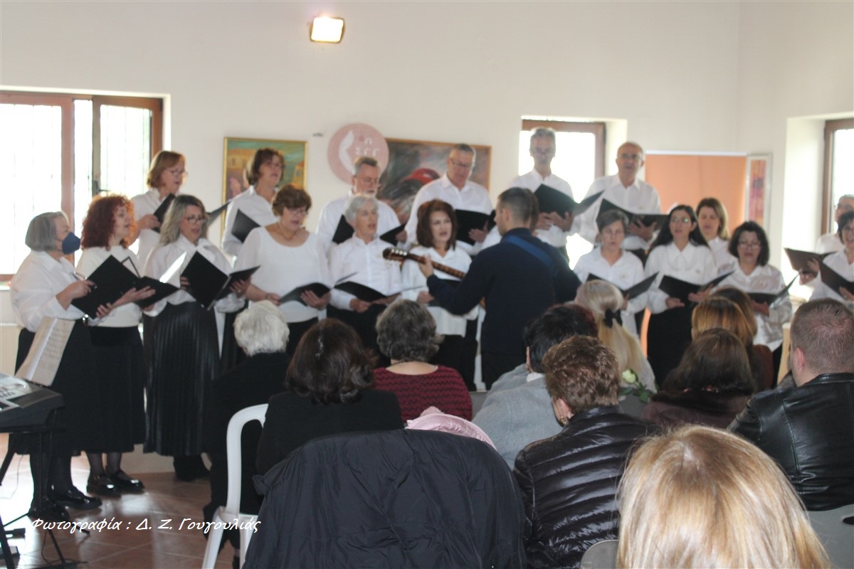 Στη συνέχεια ακούστηκαν δημοτικά τραγούδια, με θέματα από τη γυναίκα της παράδοσης, από τη Μικτή Χορωδία Γόννων «Νίκος Χατζής» με μαέστρο τον Κωνσταντίνο Σιόζιο. Στο πιάνο ήταν η Αθηνά Σιόζιου.