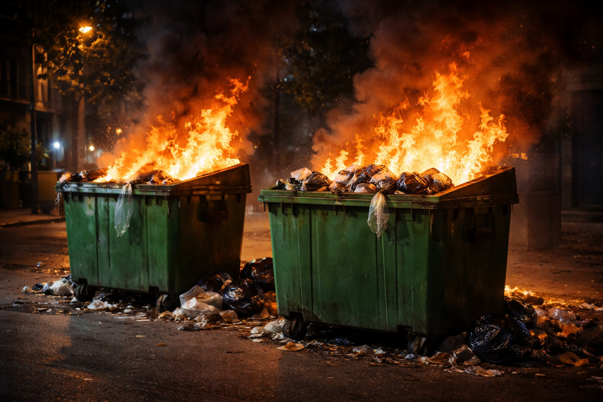 Οι πυροσβέστες κατάφεραν να θέσουν γρήγορα υπό έλεγχο τη φωτιά, ωστόσο οι κάδοι υπέστησαν ολοκληρωτική καταστροφή από τις φλόγες.