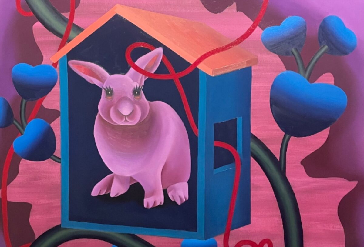 Η δημιουργική διαδικασία χαρακτηρίζεται από μια εμμονική επανάληψη σταθερών στοιχείων. Αυτός ο ρυθμός δεν είναι τυχαίος· αποτελεί μια συνειδητή προσπάθεια επιβολής ελέγχου και τάξης απέναντι στο χάος των ανεξέλεγκτων ανατροπών της ζωής. Στο επίκεντρο αυτού του κόσμου βρίσκεται το κουνέλι, μια μορφή που ενσαρκώνει το μητρικό πρότυπο και την αναπαραγωγή. Με μάτια που παραπέμπουν στην αθωότητα των παιδικών παιχνιδιών, το ζώο γίνεται ο συνδετικός κρίκος με την παιδική ηλικία, εκεί όπου η ασφάλεια και ο φόβος συνυπάρχουν.