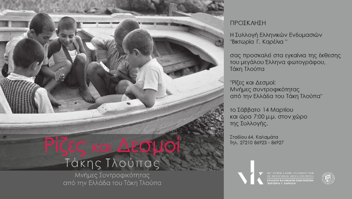 Η Συλλογή Ελληνικών Ενδυμασιών «Βικτωρία Γ. Καρέλια» παρουσιάζει την έκθεση φωτογραφίας «Ρίζες και Δεσμοί: Μνήμες Συντροφικότητας από την Ελλάδα του Τάκη Τλούπα».