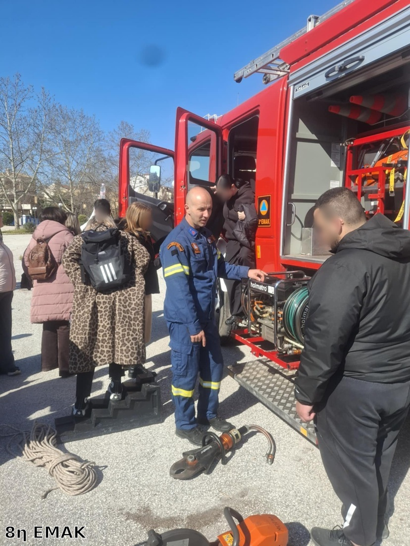 Τα στελέχη της μονάδας Δημοσθένης Ζαχαρός και Αθανάσιος Πιάχας παρουσίασαν στους μαθητές το ειδικό επιχειρησιακό όχημα της ΕΜΑΚ, καθώς και τον εξειδικευμένο εξοπλισμό που χρησιμοποιείται σε επιχειρήσεις διάσωσης και σε περιπτώσεις φυσικών καταστροφών. Παράλληλα, ενημέρωσαν τους μαθητές για τον τρόπο δράσης της μονάδας σε καταστάσεις έκτακτης ανάγκης και για τις απαιτήσεις των αποστολών διάσωσης. Οι μαθητές παρακολούθησαν την παρουσίαση με ιδιαίτερο ενδιαφέρον και είχαν την ευκαιρία να δουν από κοντά τον εξοπλισμό και να συνομιλήσουν με τα στελέχη της μονάδας, θέτοντας ερωτήσεις σχετικά με το έργο και την αποστολή της. Η δράση υλοποιήθηκε από τις εκπαιδευτικούς Γαύρου Βασιλική, Μπακρατσά Καλλιόπη, Παραπανήσιου Ευθυμία, Πήτα Μελπομένη και Ψωφάκη Ευαγγελία.