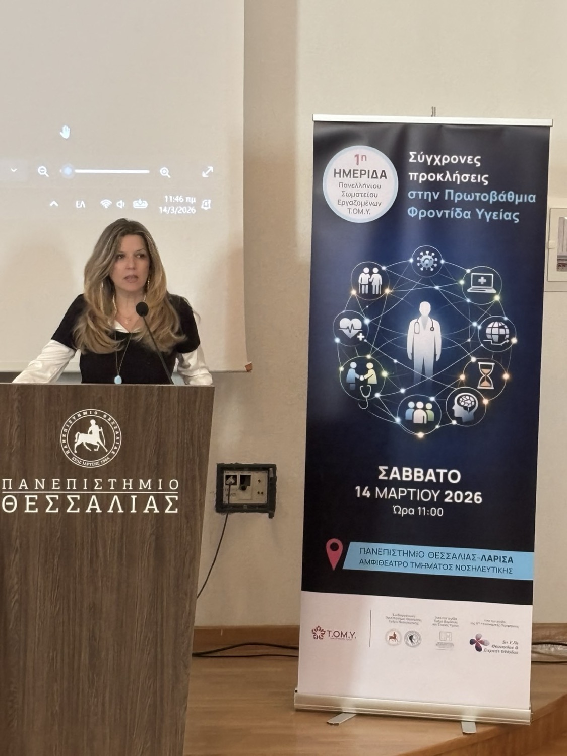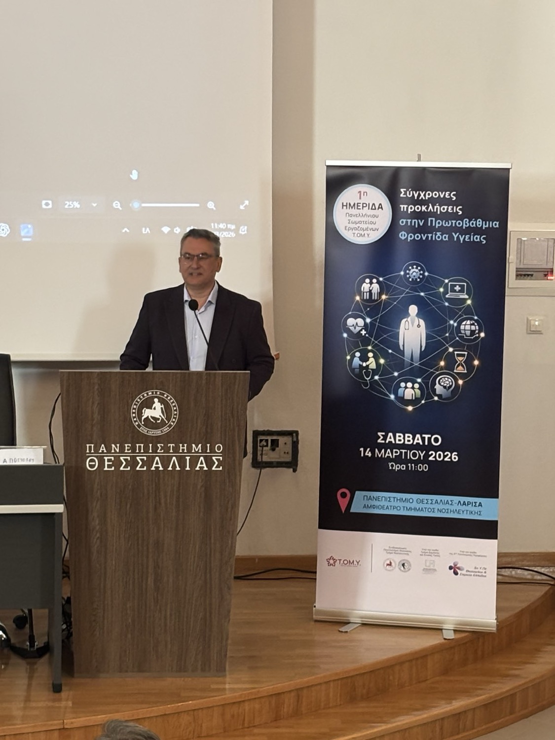 Με ιδιαίτερη επιτυχία πραγματοποιήθηκε το Σάββατο 14 Μαρτίου στη Λάρισα η 1η Ημερίδα του Πανελλήνιου Σωματείου Εργαζομένων ΤΟΜΥ, στο τμήμα Νοσηλευτικής του Πανεπιστήμιο Θεσσαλίας με θέμα: «Σύγχρονες προκλήσεις στην Πρωτοβάθμια Φροντίδα Υγείας».