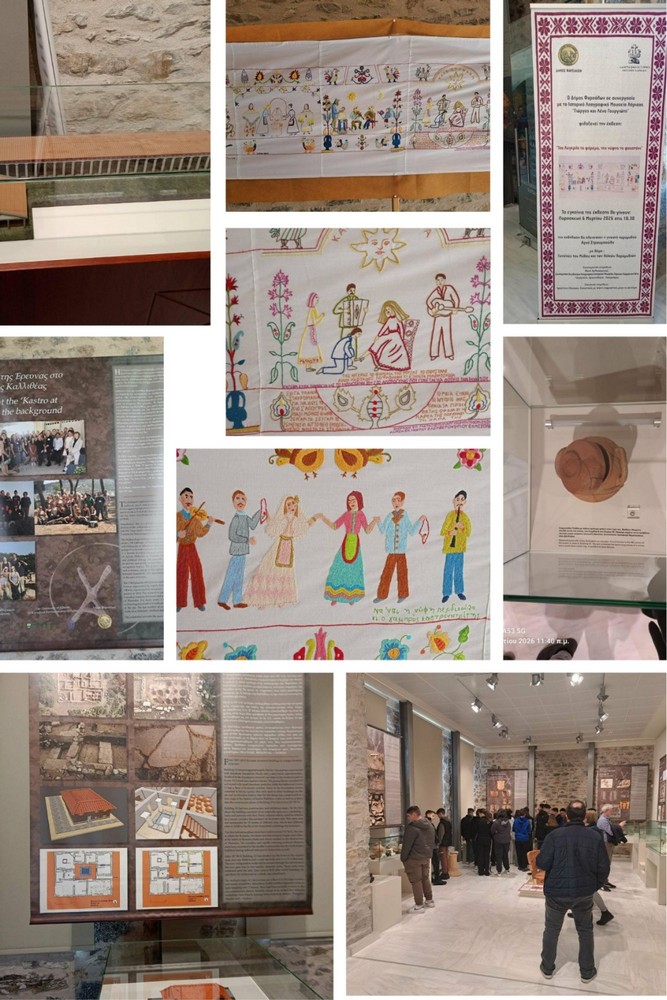 Οι μαθητές/-τριες είχαν ακόμη την ευκαιρία να θαυμάσουν την έκθεση «Της Λυγερής το φόρεμα – της νύφης το φουστάνι», ένα ξεχωριστό δείγμα ελληνικής λαϊκής τέχνης. Πρόκειται για ένα εντυπωσιακό χειροποίητο κεντητό μήκους περίπου έξι μέτρων, κεντημένο στο χέρι και αποτελούμενο από δεκαέξι σκηνές, οι οποίες αφηγούνται την τελετουργία του γάμου, από τον αργαλειό και το προξενιό μέχρι την προετοιμασία της προίκας και τον γαμήλιο χορό.