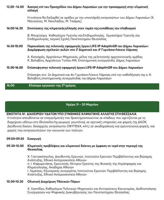 Επιμορφωτικό σεμινάριο για την Προσαρμογή της Θεσσαλίας στην Κλιματική Αλλαγή από τον Δήμο Λαρισαίων και το Πράσινο Ταμείο