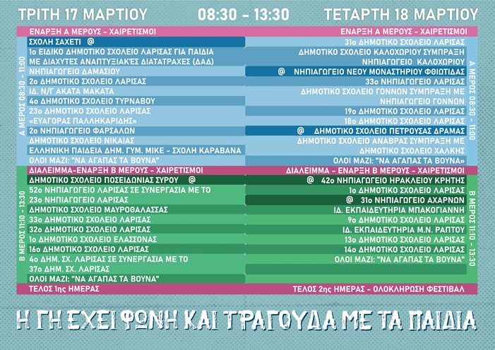 Η Διεύθυνση Πρωτοβάθμιας Εκπαίδευσης Λάρισας, σε συνεργασία με την Ιερά Μητρόπολη Λάρισης και Τυρνάβου και τον Δήμο Λαρισαίων, διοργανώνουν το 8ο Μαθητικό Μουσικό Φεστιβάλ με τίτλο: