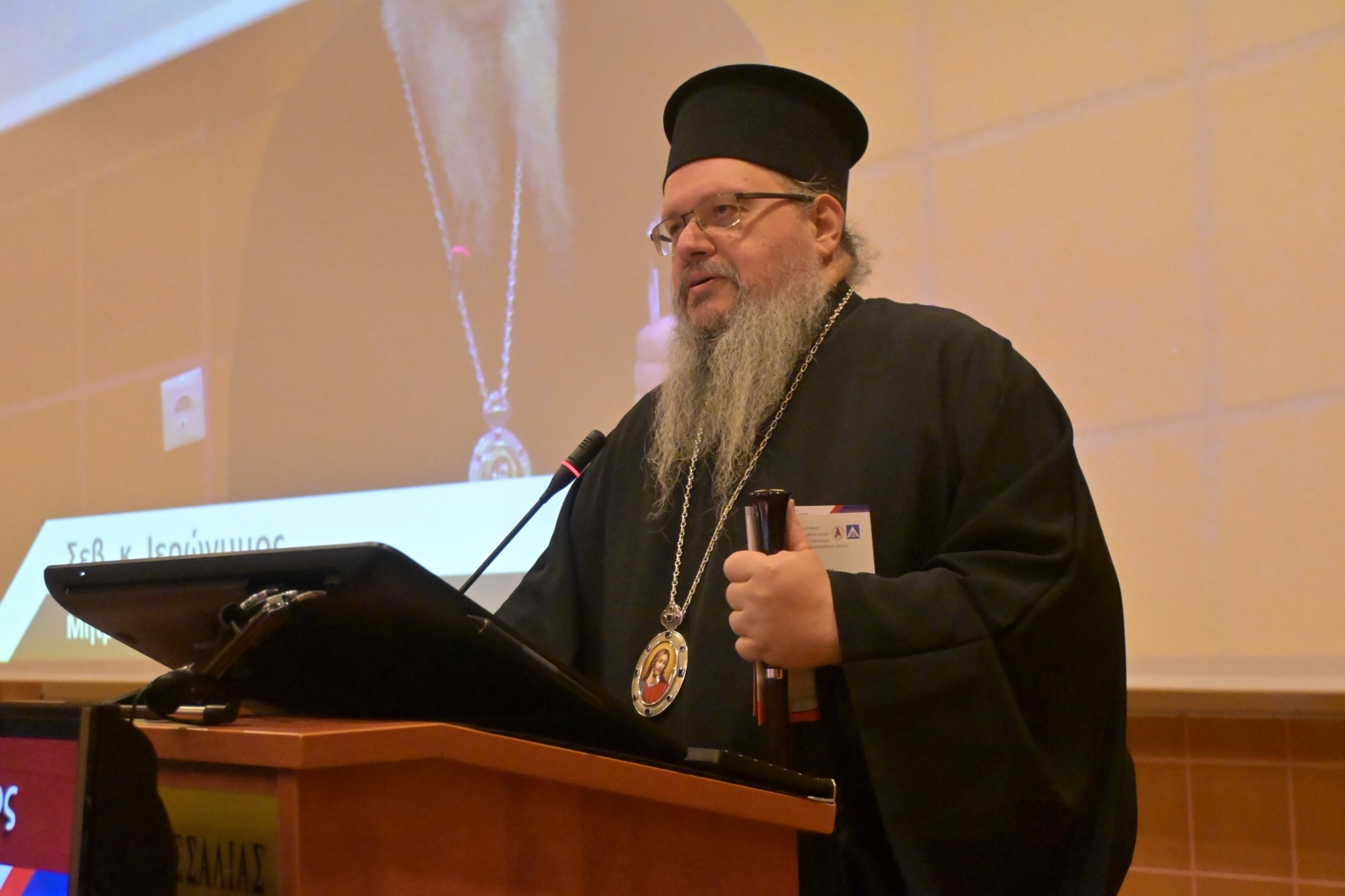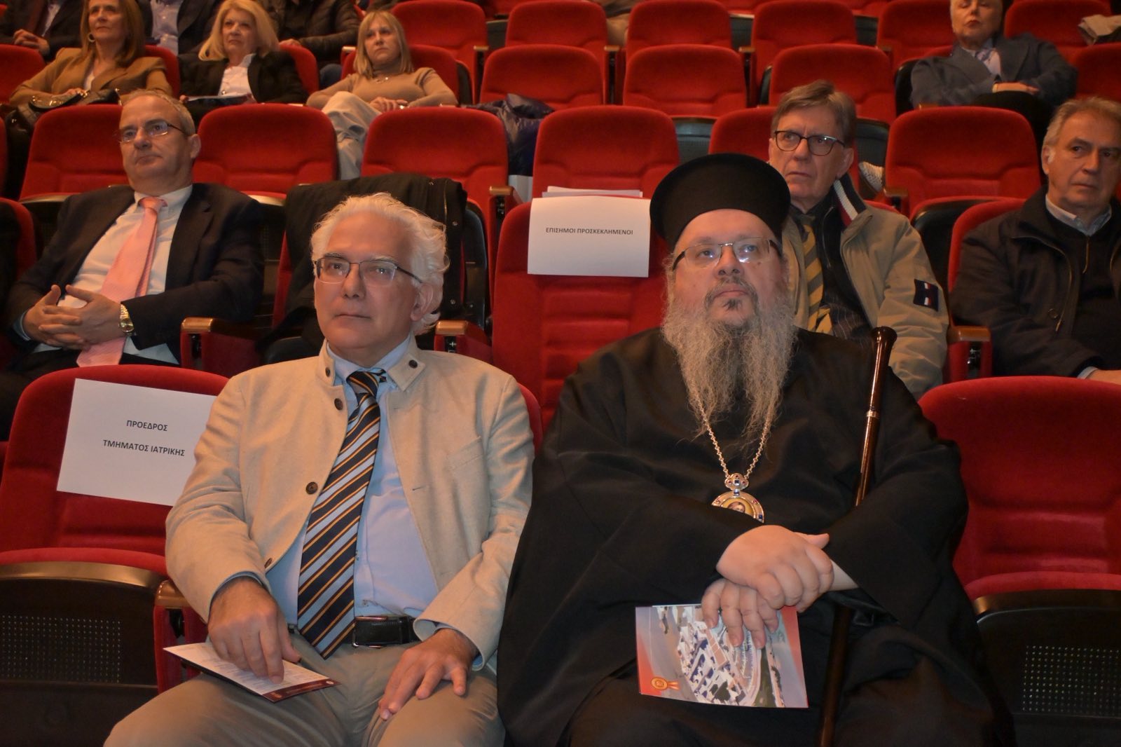 Ο Μητροπολίτης Λαρισης και Τυρνάβου κ. Ιερώνυμος, υπογράμμισε: «Είμαι πάντα χαρούμενος και συγκινημένος όταν έρχομαι στα συνέδρια αυτά της ιατρικής σχολής, όχι μόνο διότι αποτυπώνουν τη διάθεση συνεργασίας και το γεγονός ότι είμαστε σε καλές σχέσεις, αυτό είναι το λιγότερο. Το σπουδαιότερο είναι ότι εγώ αισθάνομαι άνετα να πω «οικογένεια» τον χώρο αυτό και όλους εσάς, και νομίζω ότι μπορούμε να πούμε ότι έχουμε αποδείξει ότι συνεργαζόμαστε και ότι θα προχωρήσουμε έτσι.Να αδράξω τη σημερινή ευκαιρία για να πω ένα μεγάλο ευχαριστώ, όχι μόνο στη συγκεκριμένη κλινική αλλά σε όλο το Πανεπιστημιακό, διότι είναι η ναυαρχίδα του συστήματος υγείας στην περιοχή και κάνει κάτι πολύ πιο σπουδαίο. Νομίζω έχουμε καταφέρει να εξαλείψουμε την ιατρική μετανάστευση, δηλαδή την ανάγκη των ασθενών να καταφεύγουν εκτός Θεσσαλίας για να βρουν απάντηση στις όποιες παθήσεις, στις όποιες δυσκολίες τους. Βεβαίως και τα γενικά νοσοκομεία παίζουν το ρόλο τους, αν όμως δεν υπήρχε το εξειδικευμένο Πανεπιστημιακό με τον τρόπο που λειτουργεί, με τους καθηγητές, το επίπεδο των σπουδών που παρέχει αλλά και το επίπεδο των υπηρεσιών που παρέχει, νομίζω ότι κάποια πράγματα δεν θα ήταν κατορθωτά και δεν θα μπορούσαμε να καμαρώνουμε εμείς που δεν είμαστε γιατροί και είμαστε απ’ έξω. Στηρίζουμε και πολλές φορές ακόμα και στα πιο δύσκολα, μπορεί να βγαίνουμε λίγο πιο μπροστά καμιά φορά και με λόγο αιχμηρό, όμως η προοπτική είναι πρώτον να μην πάψει να υπάρχει ούτε μία δομή υγείας».