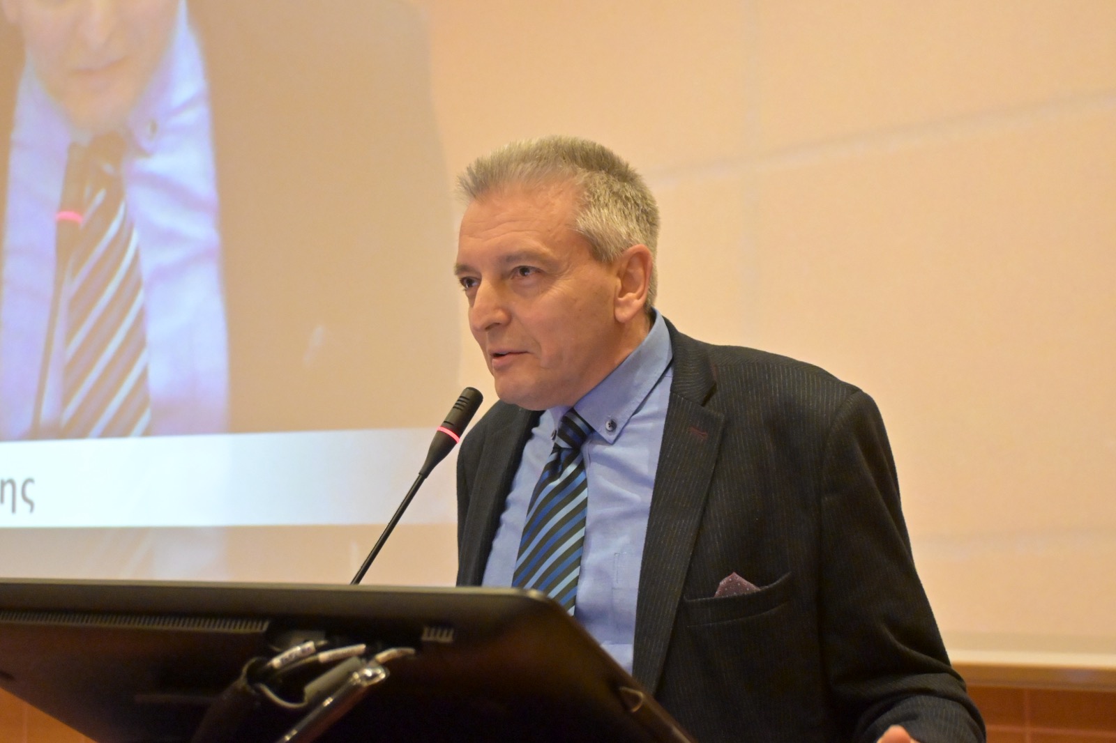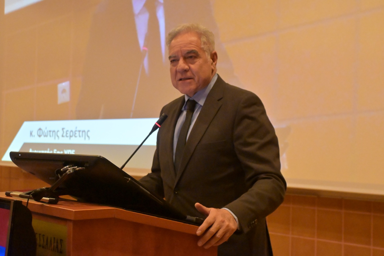 Ο διοικητής της 5ης ΥΠΕ κ. Φώτης Σερέτης στον χαιρετισμό του σημείωσε: «Είμαστε εδώ για να τιμήσουμε και να γιορτάσουμε τα 20 χρόνια από τη λειτουργία της Αγγειοχειρουργικής Κλινικής. Είναι υποχρέωση της 5ης ΥΠΕ και προσωπική δική μου να ενισχύσουμε με τον κάθε δυνατό τρόπο την Αγγειοχειρουργική Κλινική. Σε αυτή την κατεύθυνση είμαστε και μπορώ να σας πω σήμερα ότι ήδη, σε συνεργασία με τον Περιφερειάρχη, επενδύουμε και εντάσσουμε έργα αξίας πάνω από 600.000-750.000 ευρώ, που αφορά τον αγγειογράφο που έχουμε πει και είναι αίτημά σας, καθώς και άλλα εργαλεία τα οποία ήδη έχουμε εγκρίνει τις προηγούμενες μέρες. Επίσης, από 16 κρεβάτια τα επεκτείνουμε και τα πάμε στα 20. Τρίτον, έχουμε αυξήσει τη θέση των ειδικευομένων κατά έναν. Και τέταρτον, στην αμέσως επόμενη προκήρυξη, η οποία θα είναι τις επόμενες μέρες από το Υπουργείο, έχουμε βάλει ήδη μία θέση επιμηκυτή Β’ Αγιοχειρουργικής. Είναι δεδομένο ότι δεν σταματάμε εδώ».