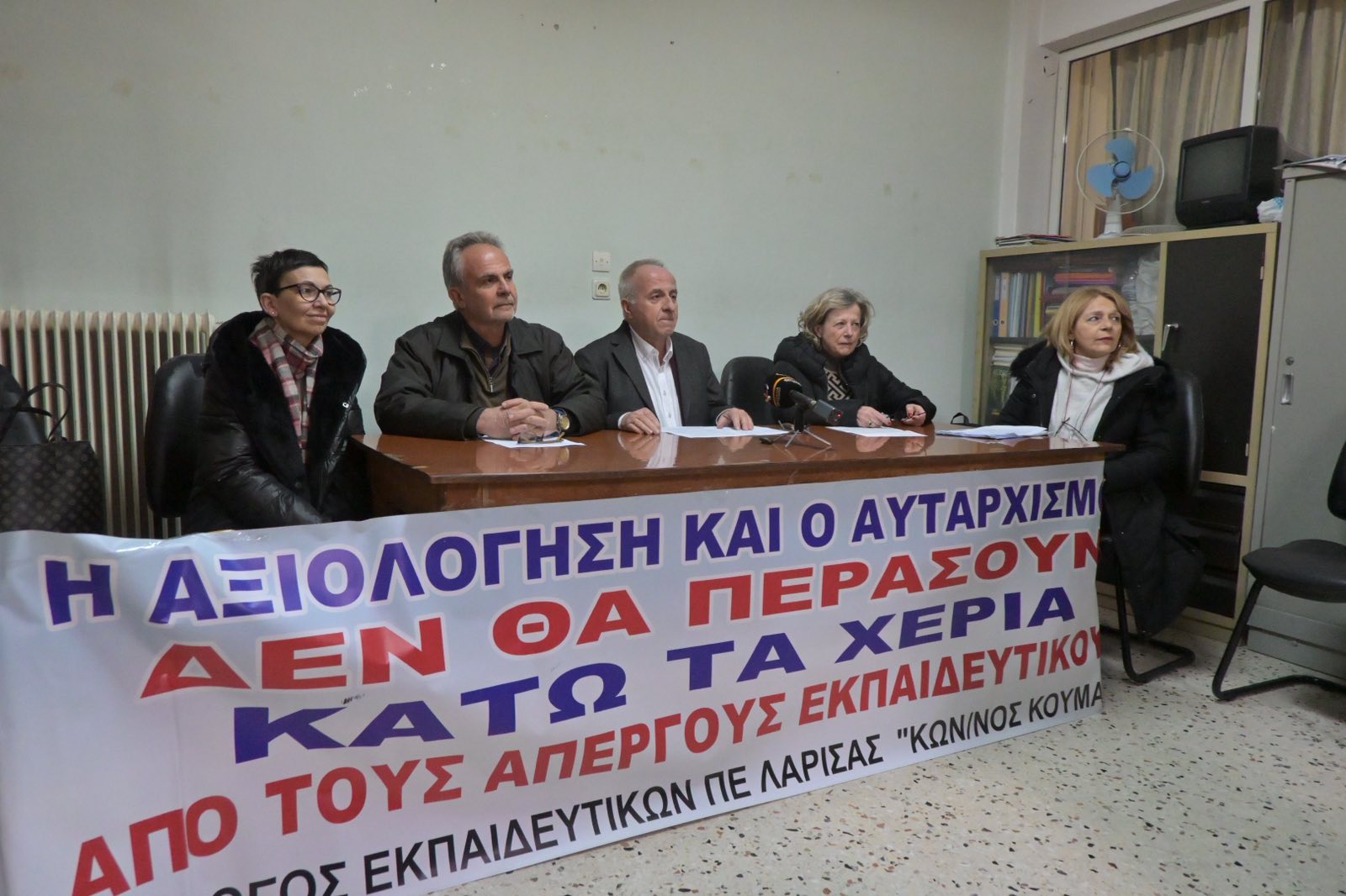 Σε αυτό το πλαίσιο τοποθετήθηκε ο Πρόεδρος, Δημήτρης Παπαποστόλου, ο οποίος ανέφερε χαρακτηριστικά: «Έχουμε δεύτερη φάση παραπομπών εκπαιδευτικών από την Πρωτοβάθμια Εκπαίδευση Λάρισας στα πειθαρχικά συμβούλια. Διότι συμμετέχουν στην απεργία – αποχή. Περίπου 12 συνάδελφοι παραπέμπονται… Ο κλάδος μας βρίσκεται σε διαρκή αγώνα, ενάντια στην αντιεπιστημονική αξιολόγηση, μία γραφειοκρατική διαδικασία που δε προσφέρει τίποτα στην αναβάθμιση του δημοσίου σχολείου.