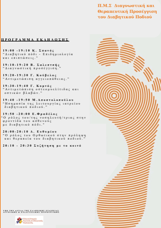 Η εκδήλωση διοργανώνεται στο πλαίσιο του Μεταπτυχιακού Προγράμματος Σπουδών «Διαγνωστική και Θεραπευτική Προσέγγιση του Διαβητικού Ποδιού» του Τμήματος Ιατρικής του Πανεπιστημίου Θεσσαλίας, τελεί υπό την αιγίδα της Ελληνικής Εταιρείας Αγγειακής και Ενδαγγειακής Χειρουργικής (ΕΕΑΕΧ) και είναι ανοιχτή στο κοινό. Στόχος της είναι η ενημέρωση και ευαισθητοποίηση των πολιτών σχετικά με την πρόληψη, τη θεραπεία και τη σωστή φροντίδα του διαβητικού ποδιού, αλλά και η παροχή συνεχιζόμενης εκπαίδευσης στους φοιτητές και αποφοίτους του Μεταπτυχιακού Προγράμματος Σπουδών.