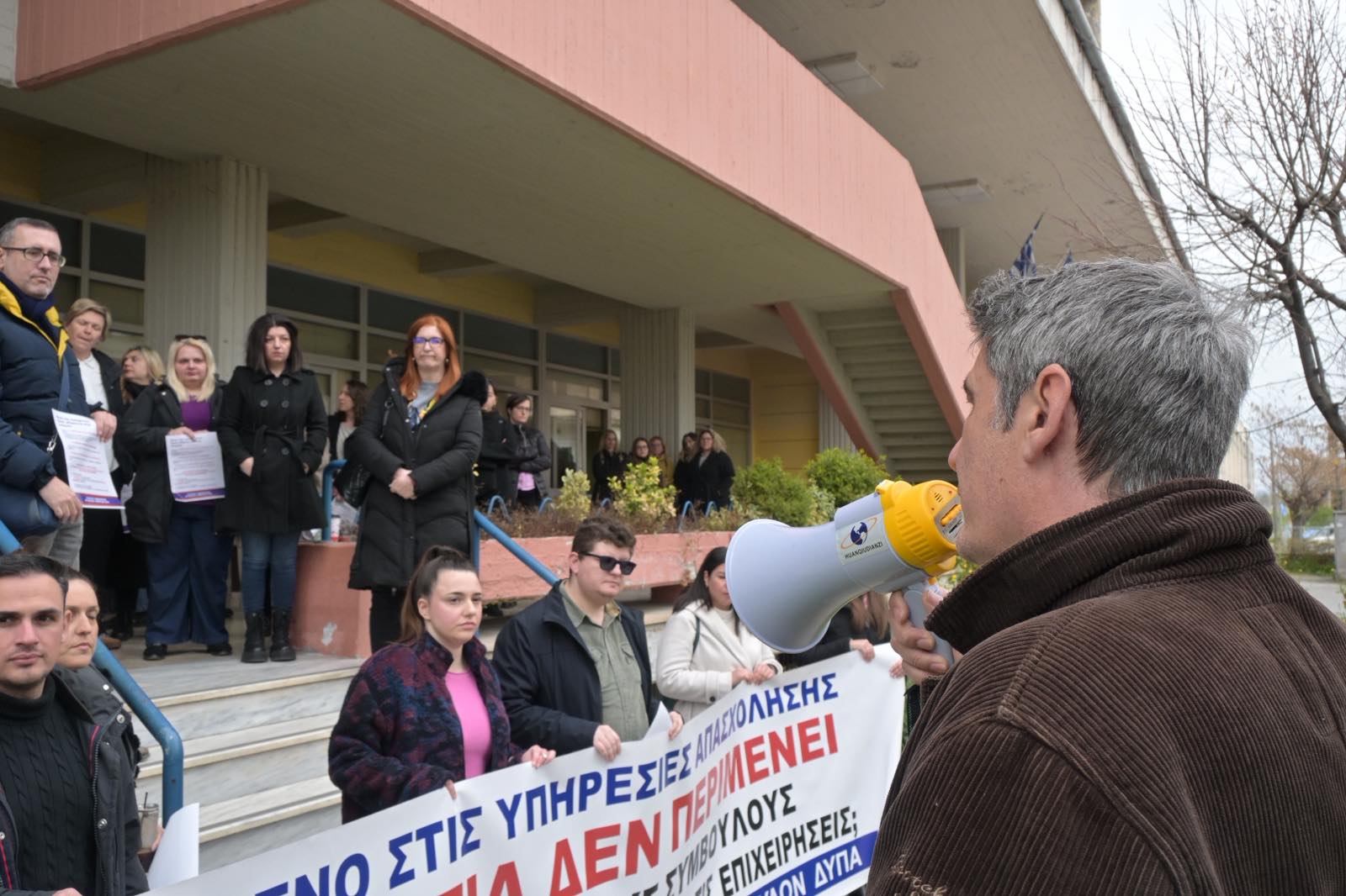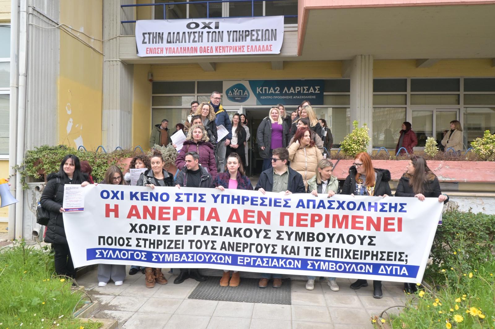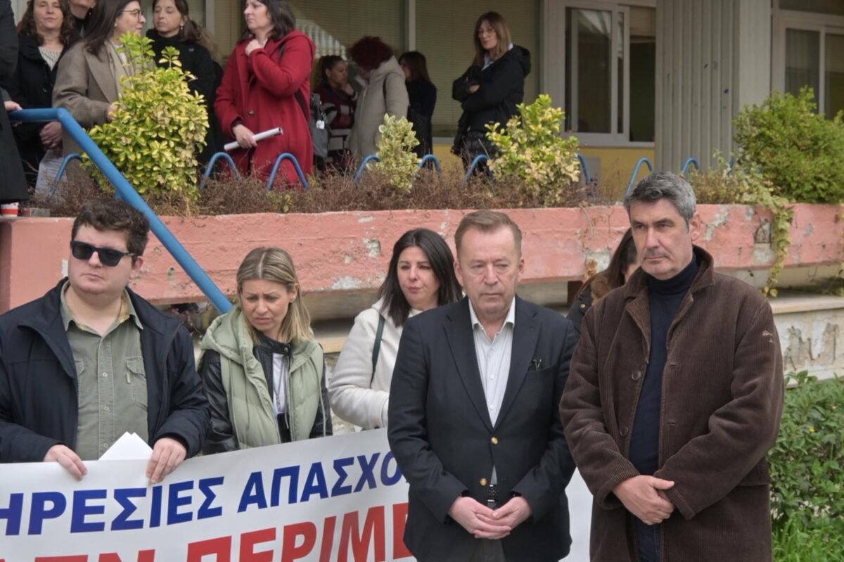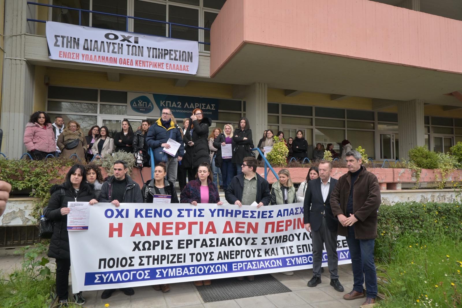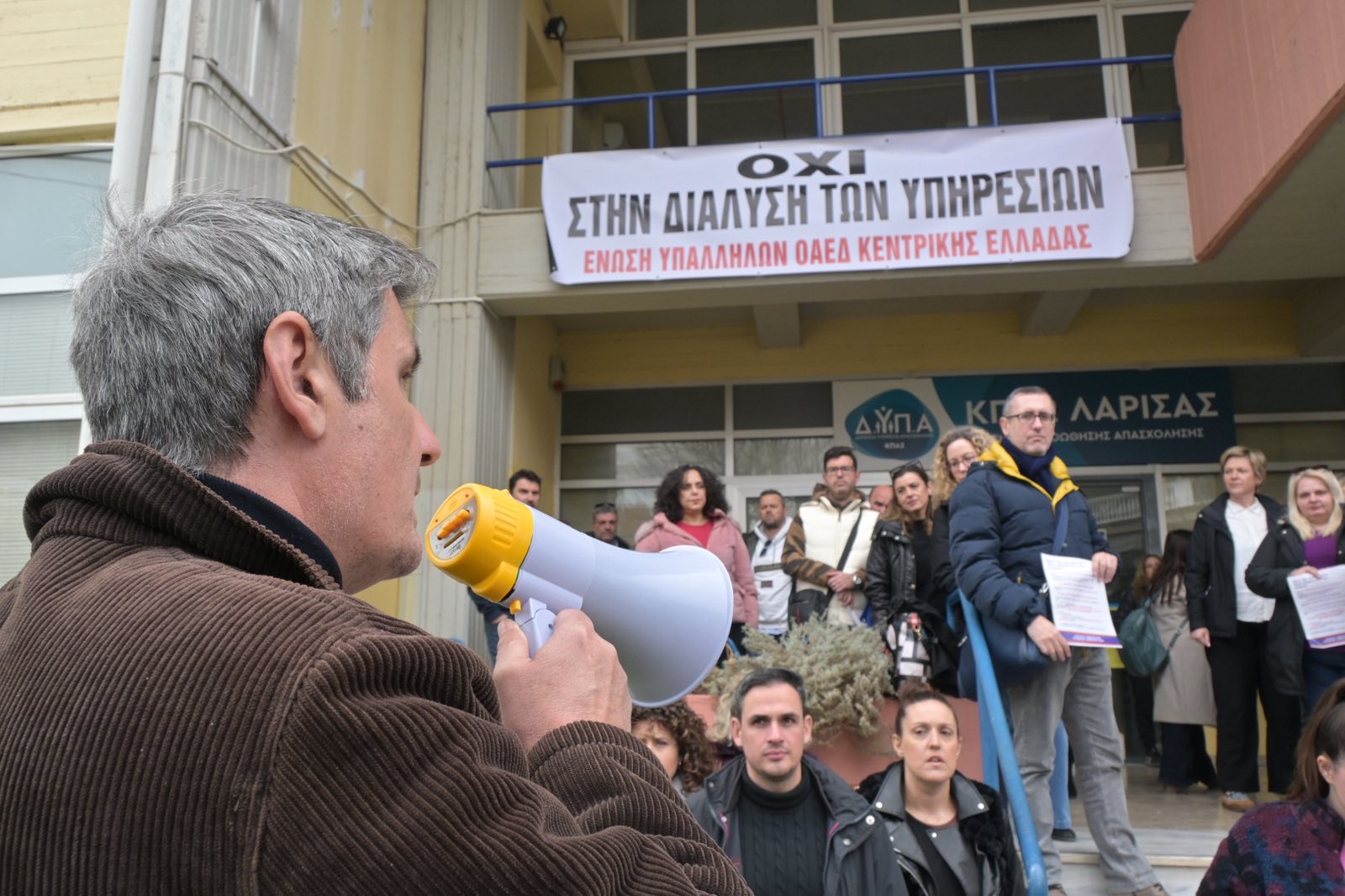 Διαμαρτυρήθηκαν εργαζόμενοι της ΔΥΠΑ στη Λάρισα: “Θα φύγει το μισό προσωπικό” – Στο πλευρό τους ο Βασίλης Κόκκαλης (φωτο – βίντεο)