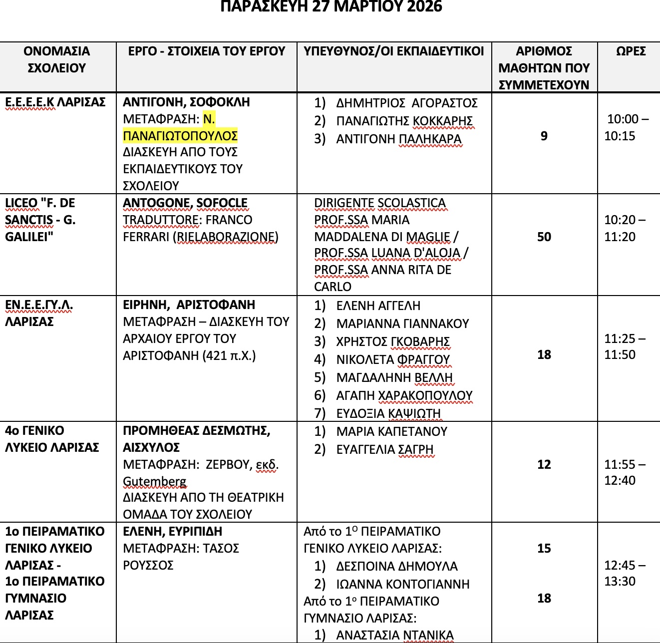 Όλα έτοιμα για το 2ο Μαθητικό Φεστιβάλ Αρχαίου Θεάτρου: Μαθητές από Λάρισα και Ιταλία σε παραστάσεις αρχαίου δράματος – Το πρόγραμμα (φωτο – βίντεο)