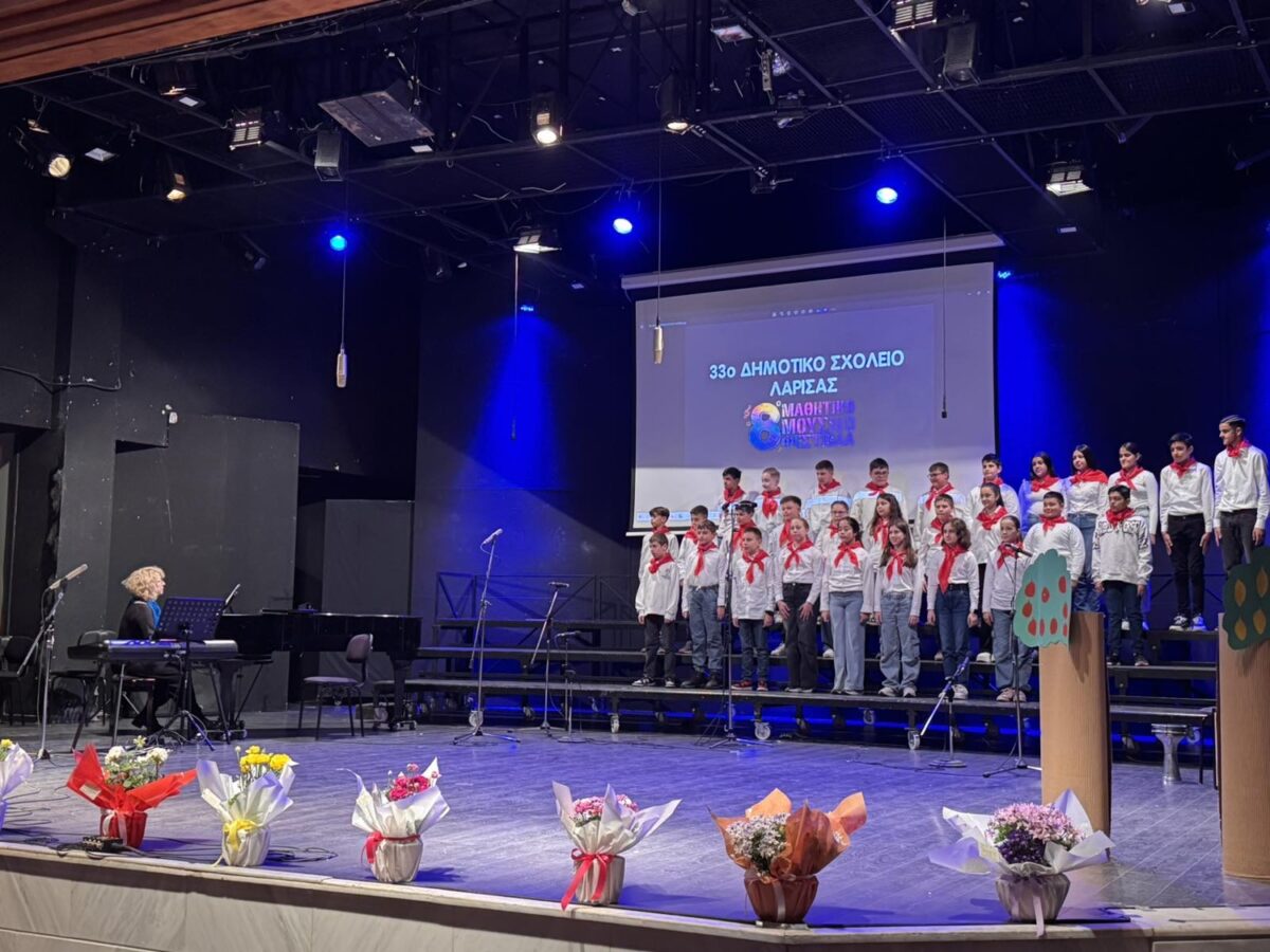 Με μεγάλη επιτυχία η χορωδία του 33ου Δημοτικού Σχολείου Λάρισας συμμετείχε στο 8ο Μαθητικό Μουσικό Φεστιβάλ, που πραγματοποιήθηκε στις 17 και 18 Μαρτίου 2026 στο Δημοτικό Ωδείο Λάρισας με διοργάνωση της Διεύθυνσης Πρωτοβάθμιας Εκπαίδευσης Λάρισας, σε συνεργασία με την Ιερά Μητρόπολη Λαρίσης και Τυρνάβου και τον Δήμο Λαρισαίων.