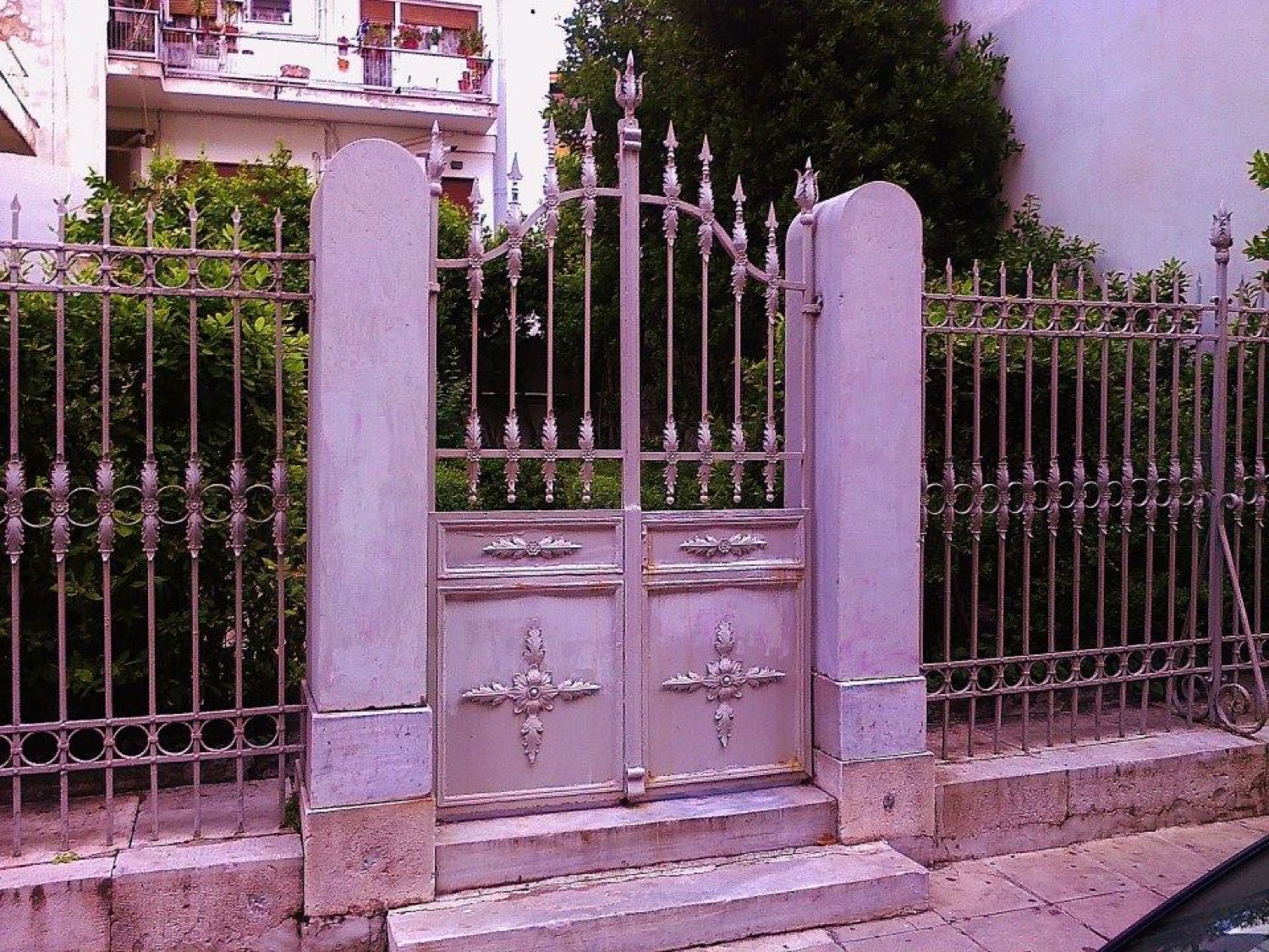 Διαπιστώσαμε έτσι ότι τα περίτεχνα κάγκελα και η πολύτιμη εξώπορτα του κτιρίου, αλλά και η κεντρική είσοδος του κτιρίου που καταγράφεται στην έκθεση του ΤΕΕ, ως μία σπάνια ξυλόγλυπτη πόρτα, έχουν απομακρυνθεί.