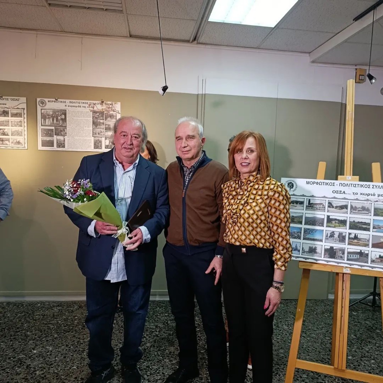 Παρουσία του Δημάρχου Τεμπών Γιώργου Μανώλη πραγματοποιήθηκαν τα εγκαίνια της έκθεσης φωτογραφίας με τίτλο «Η Όσσα στο διάβα… των χρόνων», την Παρασκευή 20 Μαρτίου 2026, στο Χατζηγιάννειο Πνευματικό Κέντρο Λάρισας, σε μια ιδιαίτερα συγκινητική εκδήλωση που διοργάνωσε ο Μορφωτικός – Πολιτιστικός Σύλλογος Όσσας.