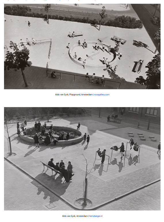 Η μεγάλη έκρηξη όμως παρατηρείται μετά το τέλος του Β΄ Παγκοσμίου Πολέμου. Το στίγμα του άφησε ο Ολλανδός αρχιτέκτονα Aldo van Eyck με τις θρυλικές παιδικές χαρές του στο Άμστερνταμ. Κατασκευάστηκαν εκατοντάδες μετά τον δεύτερο Παγκόσμιο Πόλεμο από τη δημόσια υπηρεσία της πόλης, ως μια στρατηγική αναζωογόνησης και επανακατάληψης από τους πολίτες των κατεστραμμένων, βομβαρδισμένων οικοπέδων της. Στην Ελλάδα είχαμε μεταπολεμικά τον Δημήτρη Πικιώνη, που σχεδίασε την περίφημη παιδική χαρά στη Φιλοθέη· τέσσερα χρόνια έκανε να ολοκληρωθεί, από το 1961 έως το 1964.