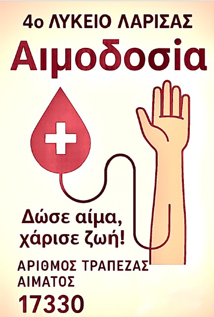 Πρόσκληση σε Εθελοντική Αιμοδοσία στο 4ο ΓΕΛ Λάρισας