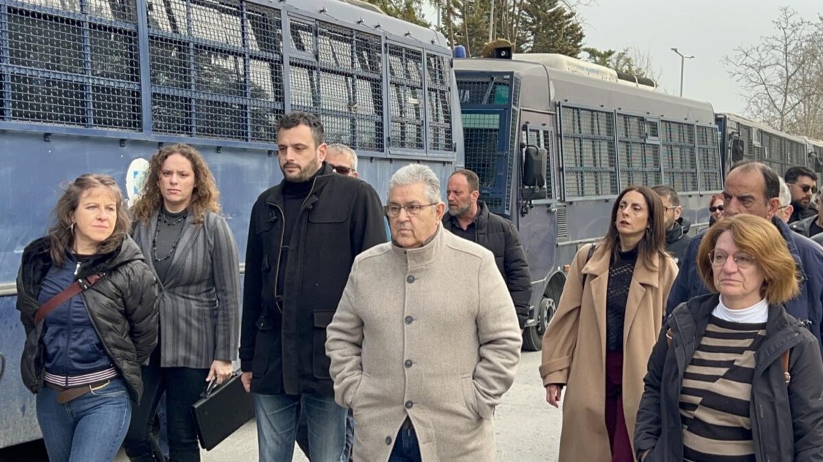 Πλήθος κόσμου απ’ όλα τα κοινωνικά στρώματα και από κάθε πλευρά της Ελλάδος, έχει συγκεντρωθεί από νωρίς το πρωί της Δευτέρας (23/03) στη Λάρισα (Γαιόπολις) για την έναρξη της Δίκης των Τεμπών, μεταξύ των οποίων και πολιτικοί φορείς.