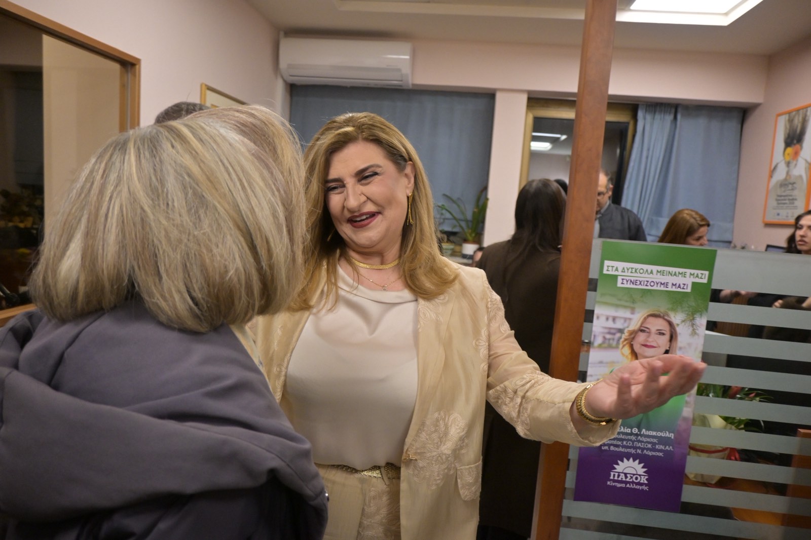 Παραμονή της ονομαστικής της εορτής, η Λαρισαία βουλευτής του ΠΑΣΟΚ – ΚΙΝΑΛ, Ευαγγελία Λιακούλη, υποδέχτηκε πλήθος κόσμου στο γραφείο της, για να εισπράξει, αλλά και να ανταποδώσει ευχές. Παρά το εορταστικό κλίμα, δε δίστασε να σταθεί στις εγχώριες, αλλά και τις οικουμενικές κρίσεις που ταλανίζουν την καθημερινότητα, ολοκληρώνοντας τον λόγο της με ένα ελπιδοφόρο μήνυμα.