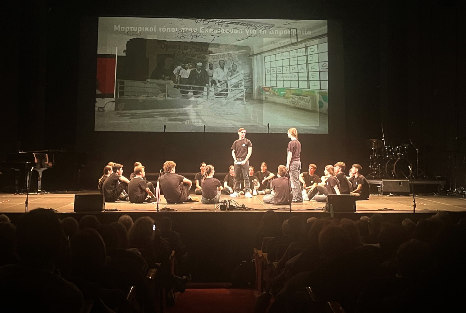 Τις εντυπώσεις έκλεψε η διασχολική ομάδα του 5ου Γυμνασίου και του 5ου Λυκείου Λάρισας, στο πλαίσιο του προγράμματος «Δημοκρατία και Εκπαίδευση», συμμετέχοντας τιμητικά στην εκδήλωση που πραγματοποιήθηκε στις 14 Μαρτίου 2026 στο εμβληματικό ιστορικό θέατρο «Μαρία Κάλλας» στην Αθήνα (Παλαιά Εθνική Λυρική Σκηνή), παρουσία του Δημάρχου Αθηναίων, κ. Χάρη Δούκα.