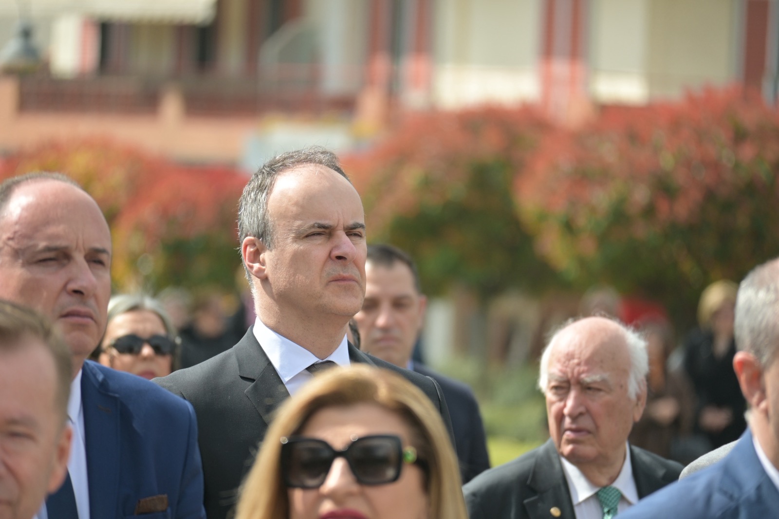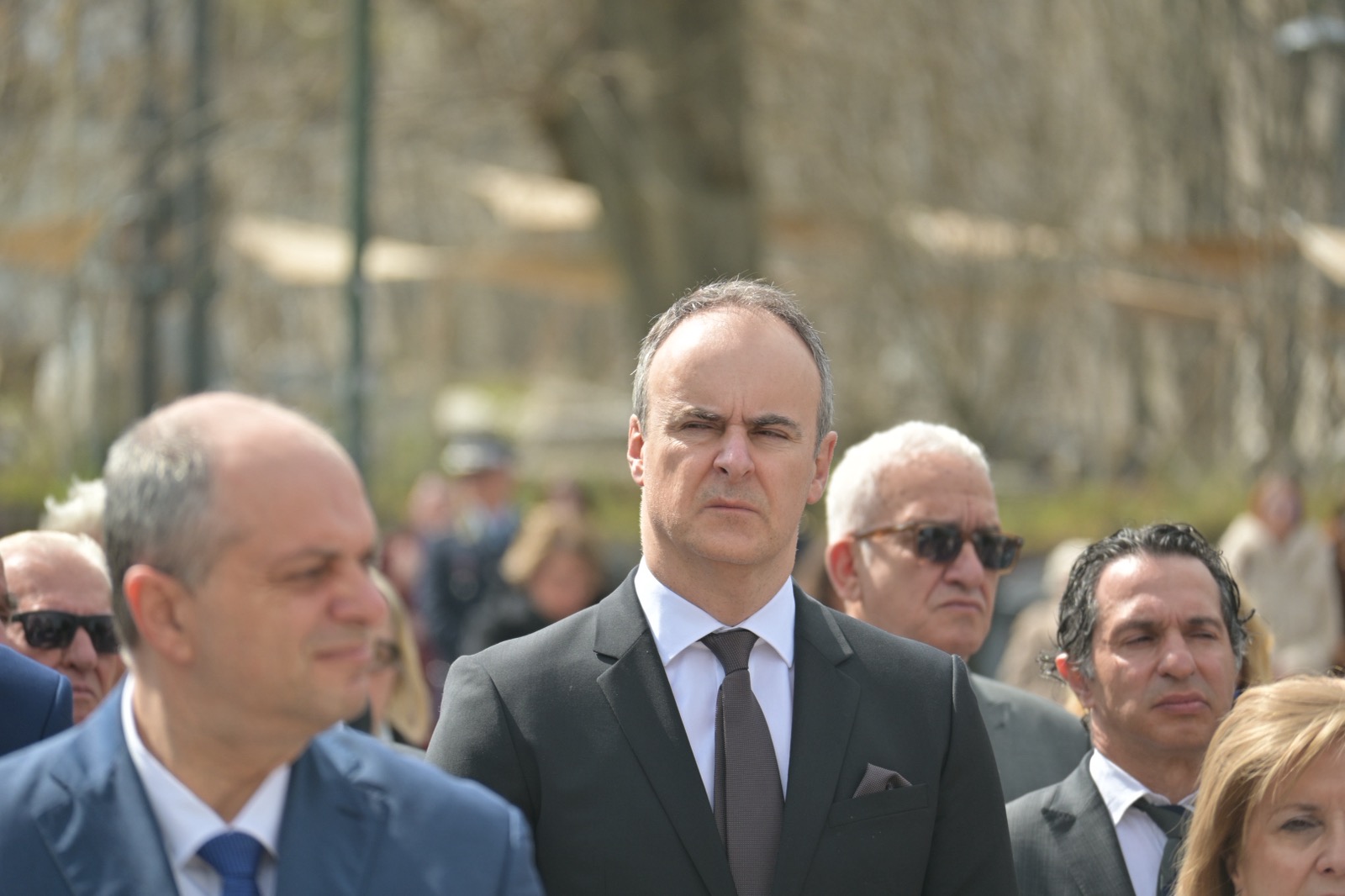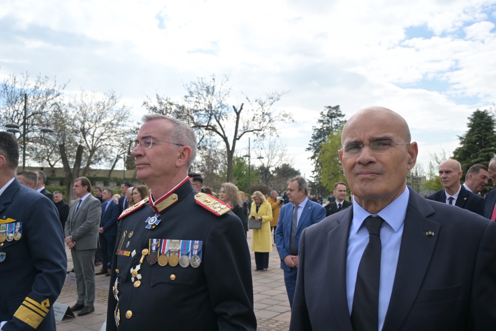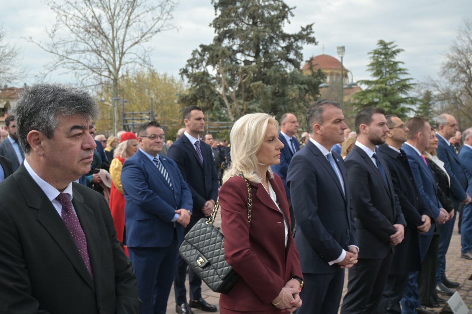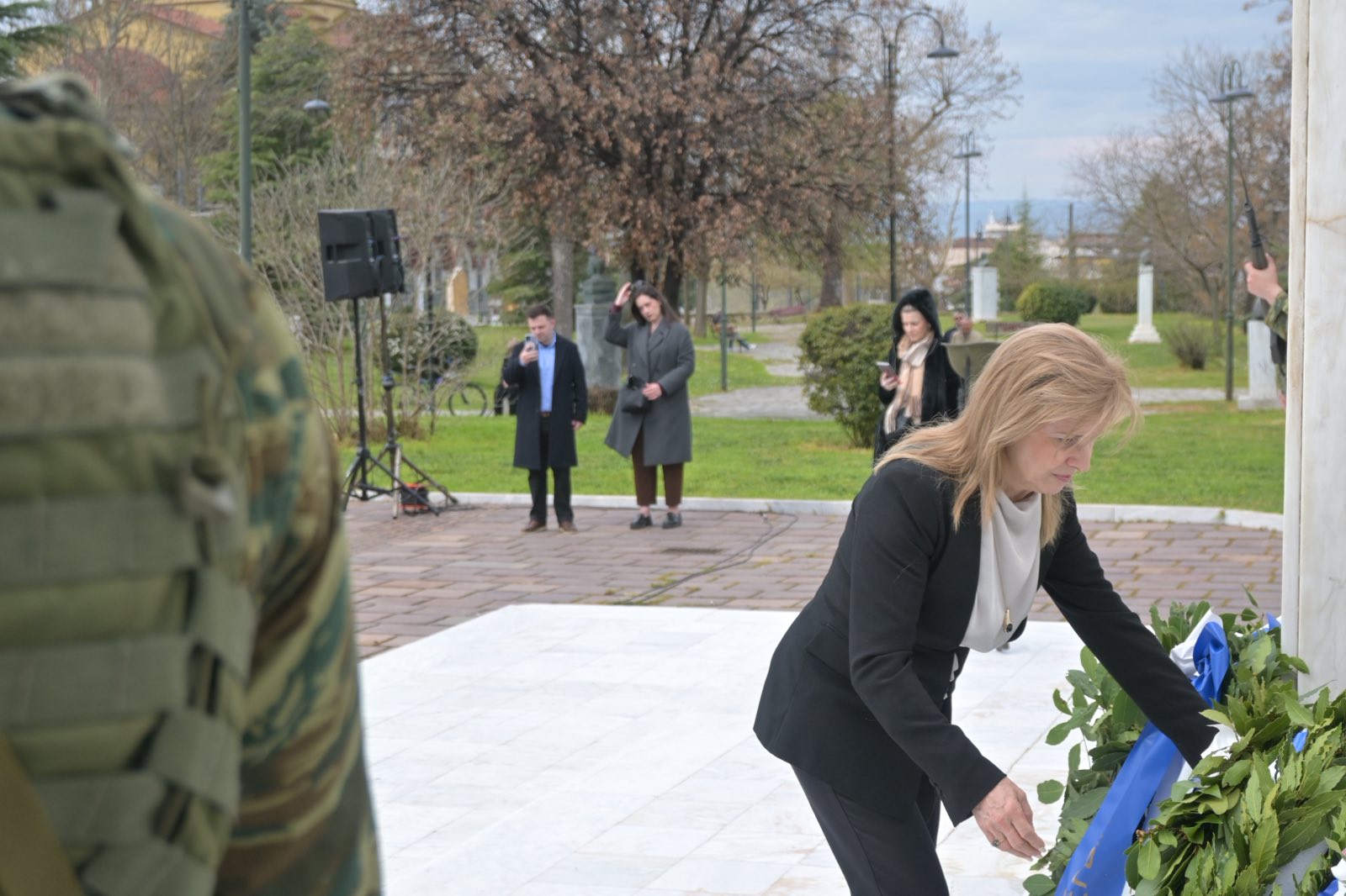 Εκεί, σε μία γεμάτη σεβασμό σεμνή τελετή, κατέθεσαν στεφάνια εις τη μνήμη όσων έπεσαν μαχόμενοι για την ανεξαρτησία της πατρίδας, ανήμερα της εθνικής επετείου της 25ης Μαρτίου.