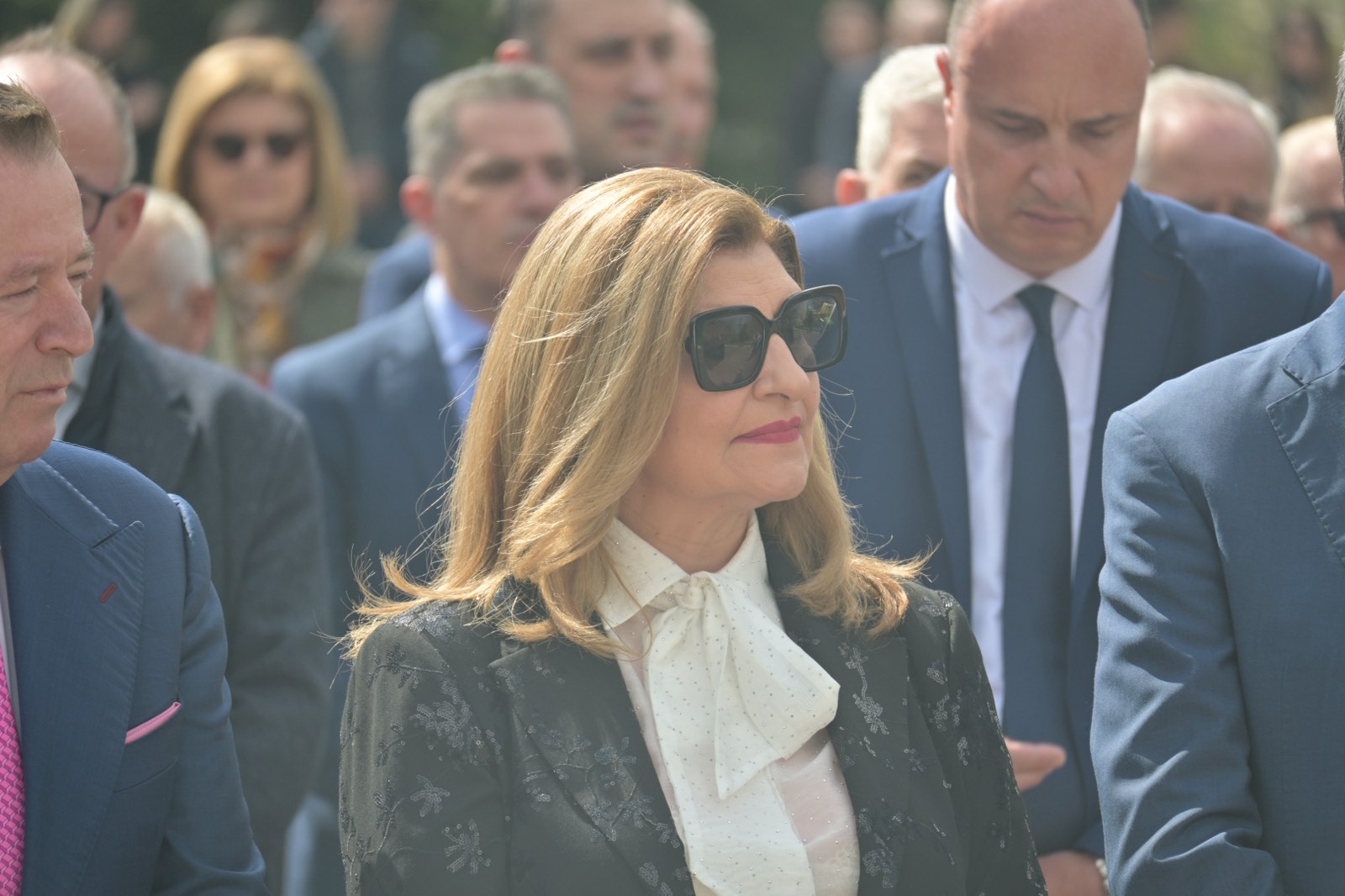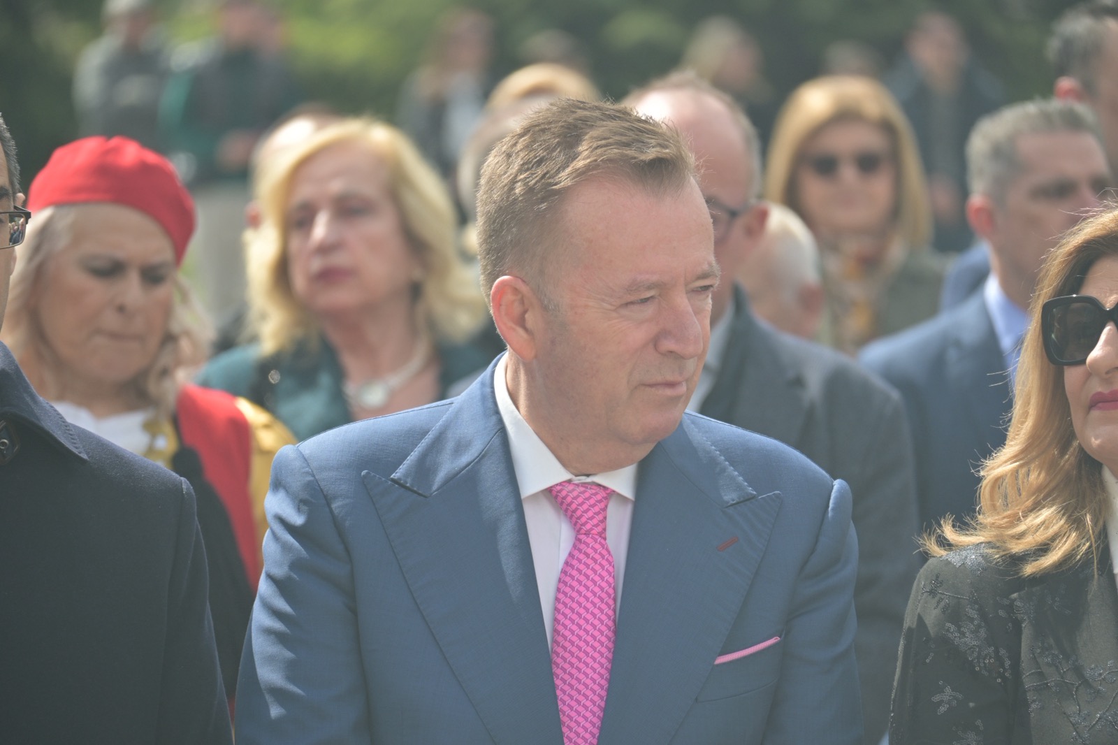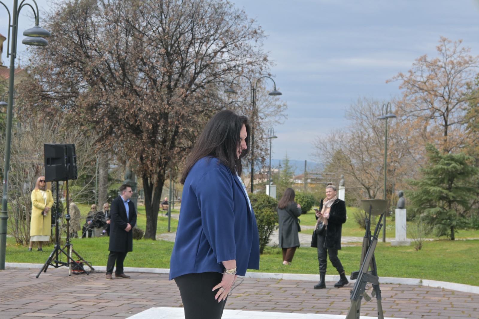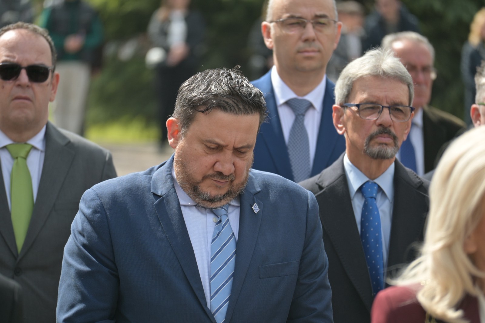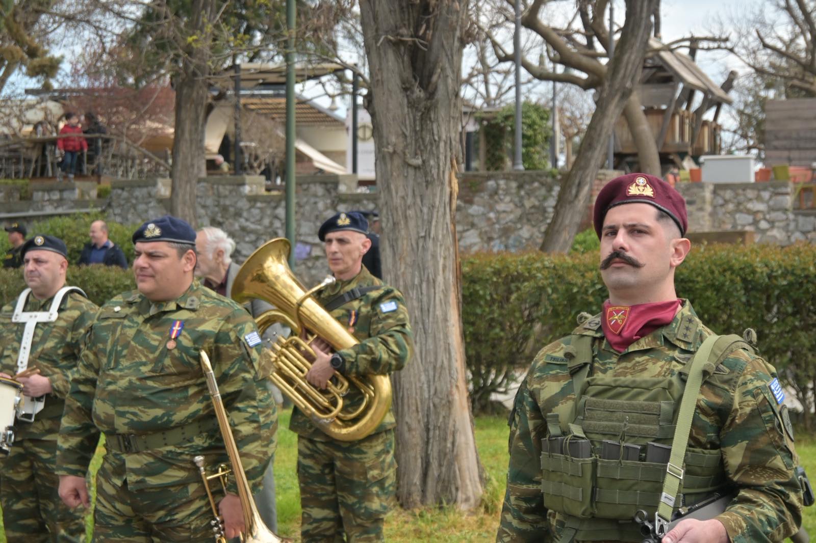 Εκεί, σε μία γεμάτη σεβασμό σεμνή τελετή, κατέθεσαν στεφάνια εις τη μνήμη όσων έπεσαν μαχόμενοι για την ανεξαρτησία της πατρίδας, ανήμερα της εθνικής επετείου της 25ης Μαρτίου.