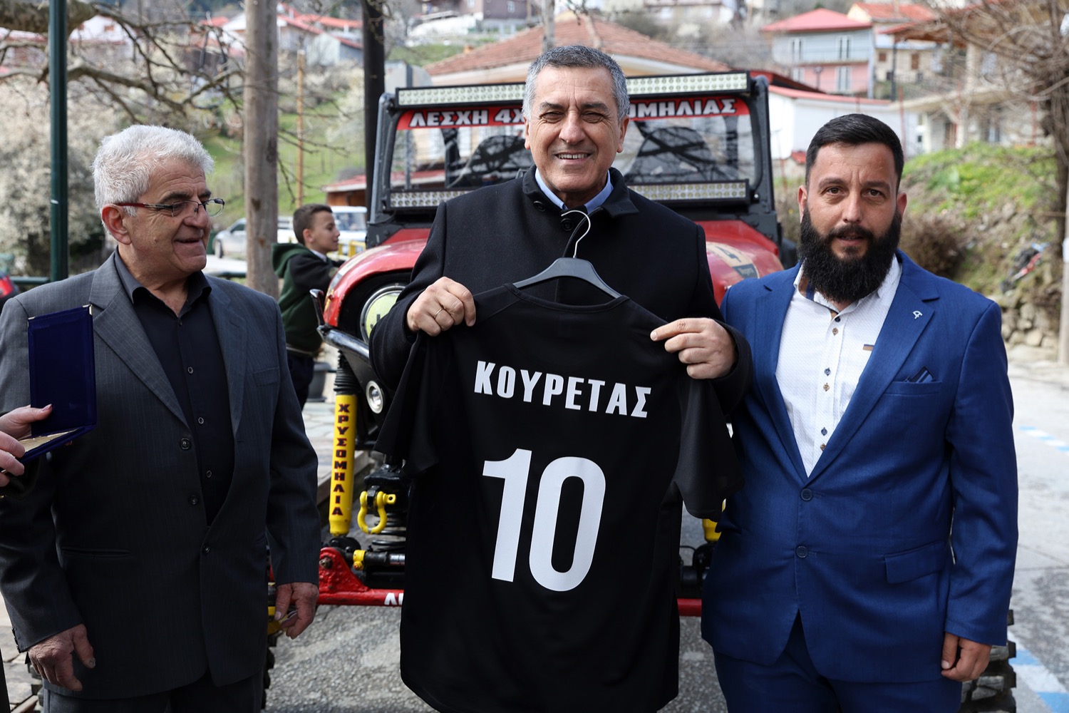 Επιπλέον, η ομάδα Α.Ο. Δόξα Χρυσομηλιάς, δια χειρός του αρχηγού του Παναγιώτη Αγραφιώτη προσέφερε στον κ. Κουρέτα την τιμητική φανέλα με το νούμερο 10.